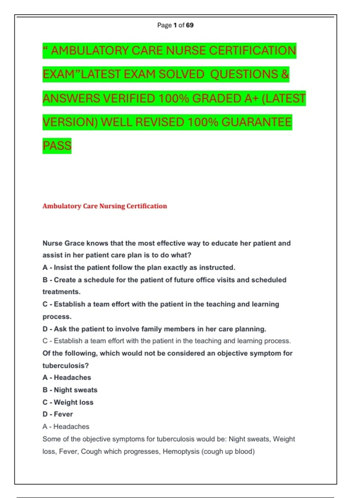 “ AMBULATORY CARE NURSE CERTIFICATION