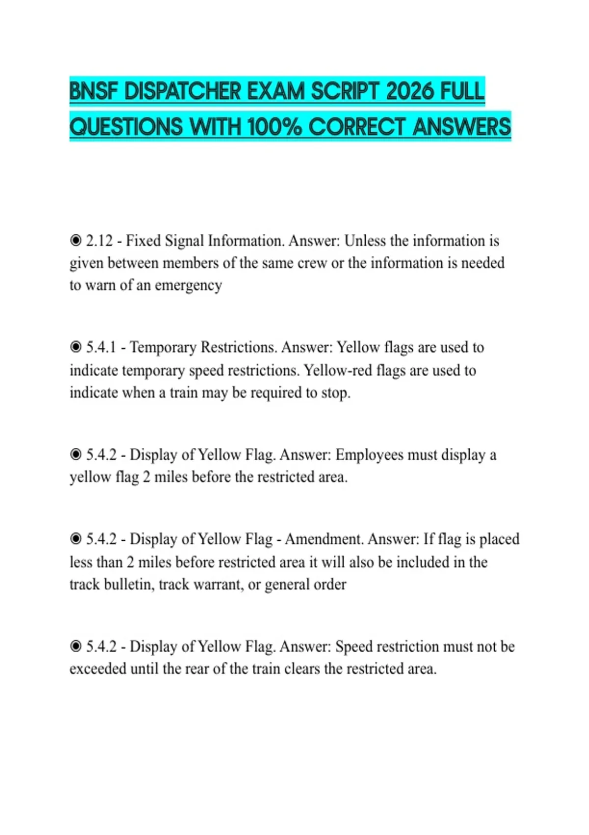 BNSF DISPATCHER EXAM SCRIPT 2026 FULL QUESTIONS WITH 100% CORRECT ANSWERS