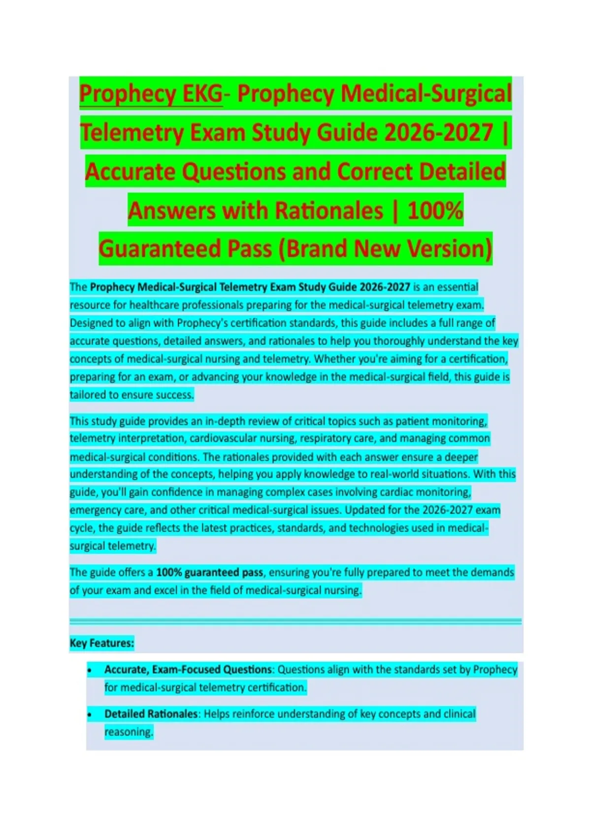 The Prophecy Medical-Surgical Telemetry Exam Study Guide 2026-2027 is an essential