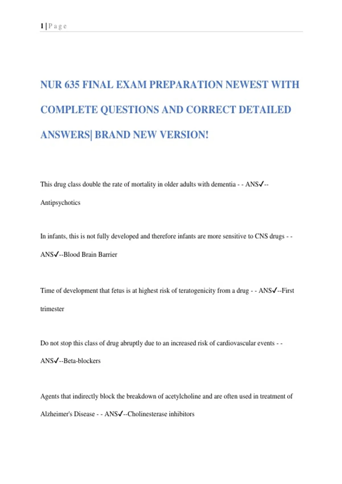 NUR 635 FINAL EXAM PREPARATION NEWEST WITH COMPLETE QUESTIONS AND CORRECT DETAILED ANSWERS| BRAND NEW VERSION!