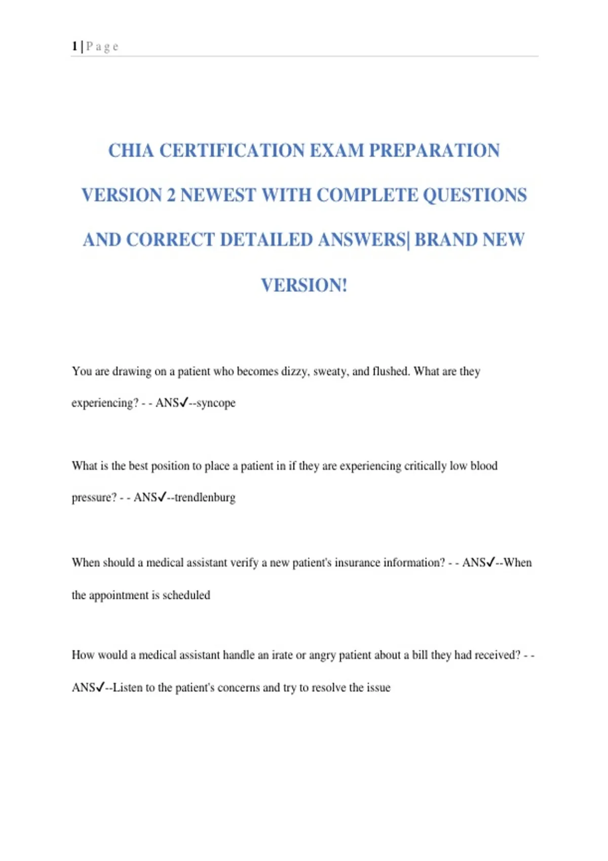 CHIA CERTIFICATION EXAM PREPARATION VERSION 2 NEWEST WITH COMPLETE QUESTIONS AND CORRECT DETAILED ANSWERS| BRAND NEW VERSION!