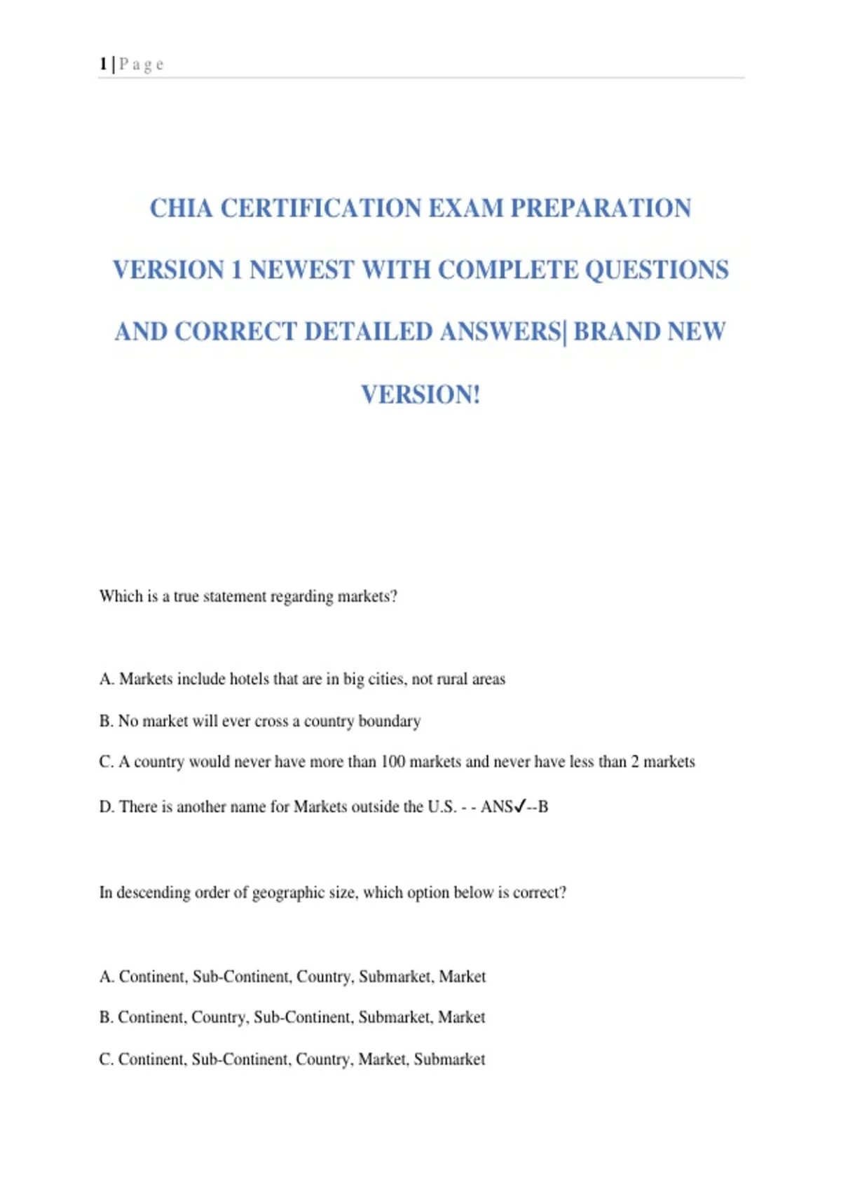 CHIA CERTIFICATION EXAM PREPARATION VERSION 1 NEWEST WITH COMPLETE QUESTIONS AND CORRECT DETAILED ANSWERS| BRAND NEW VERSION!