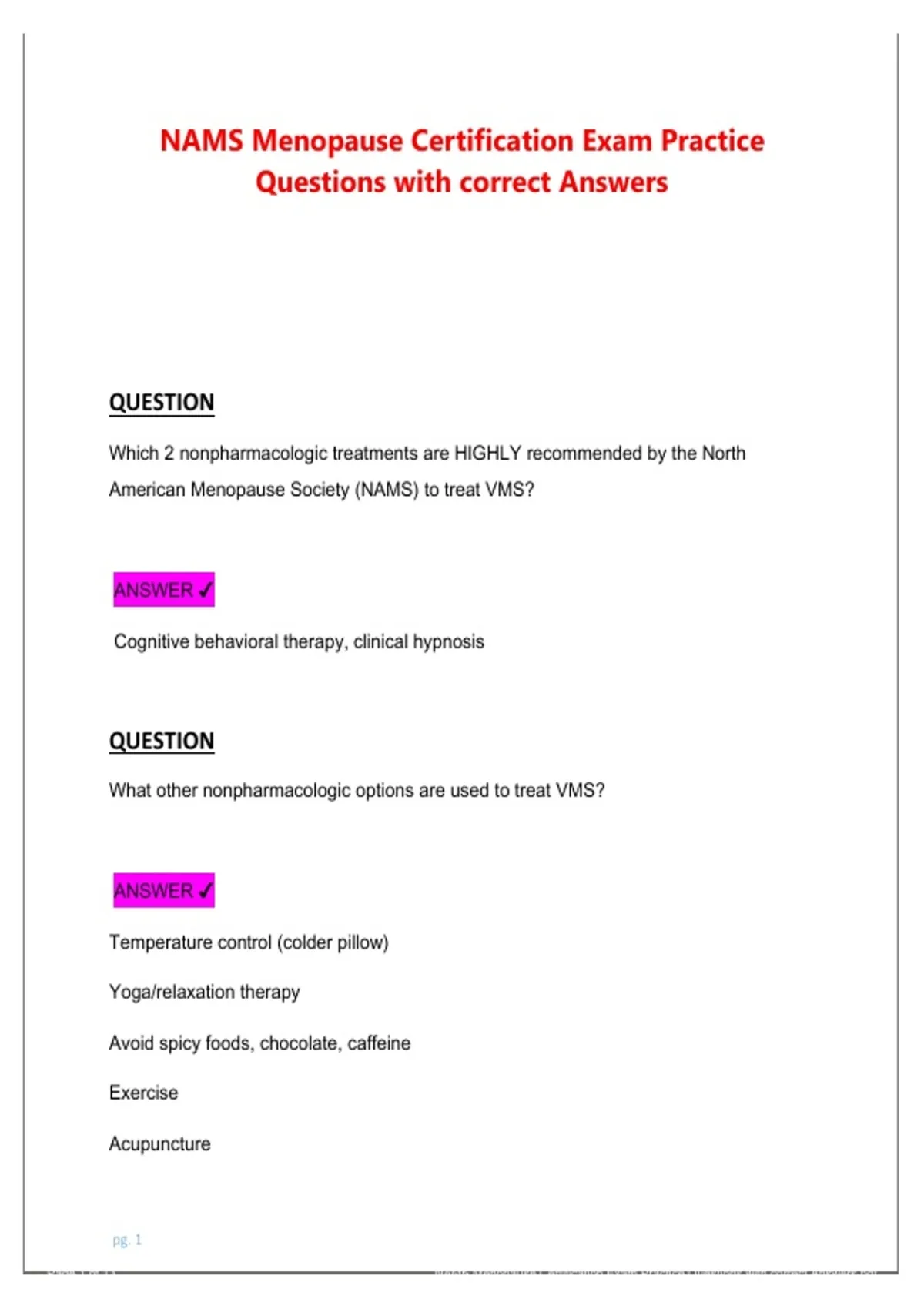 1 Menopause Certification Exam Practice Questions with correct Answers.pdf