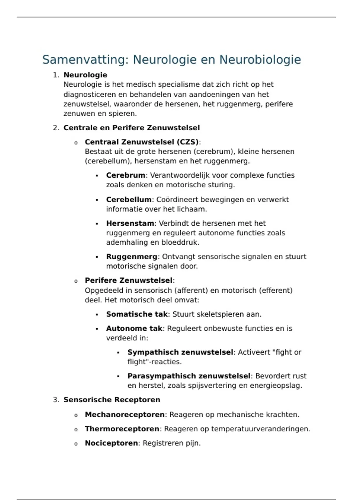 Samenvatting: Neurologie en Neurobiologie