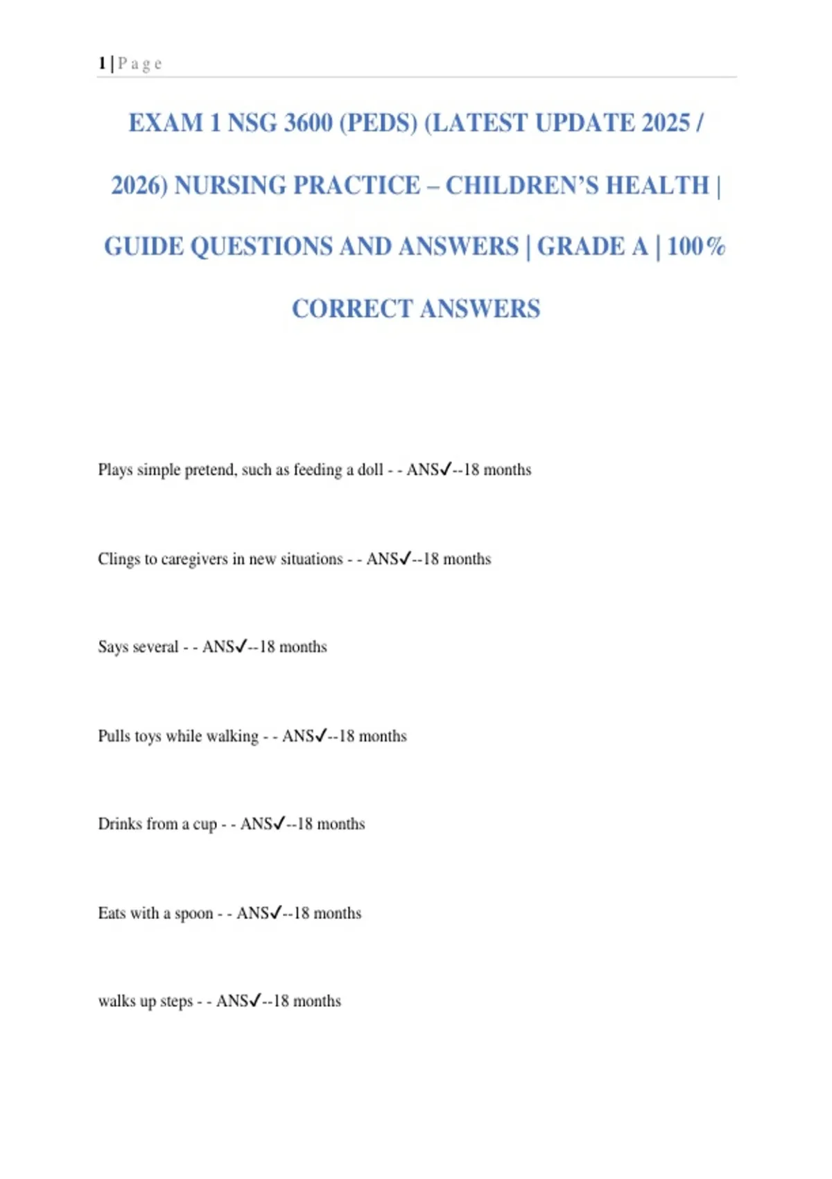 EXAM 1 NSG 3600 (PEDS) (LATEST UPDATE 2025 /