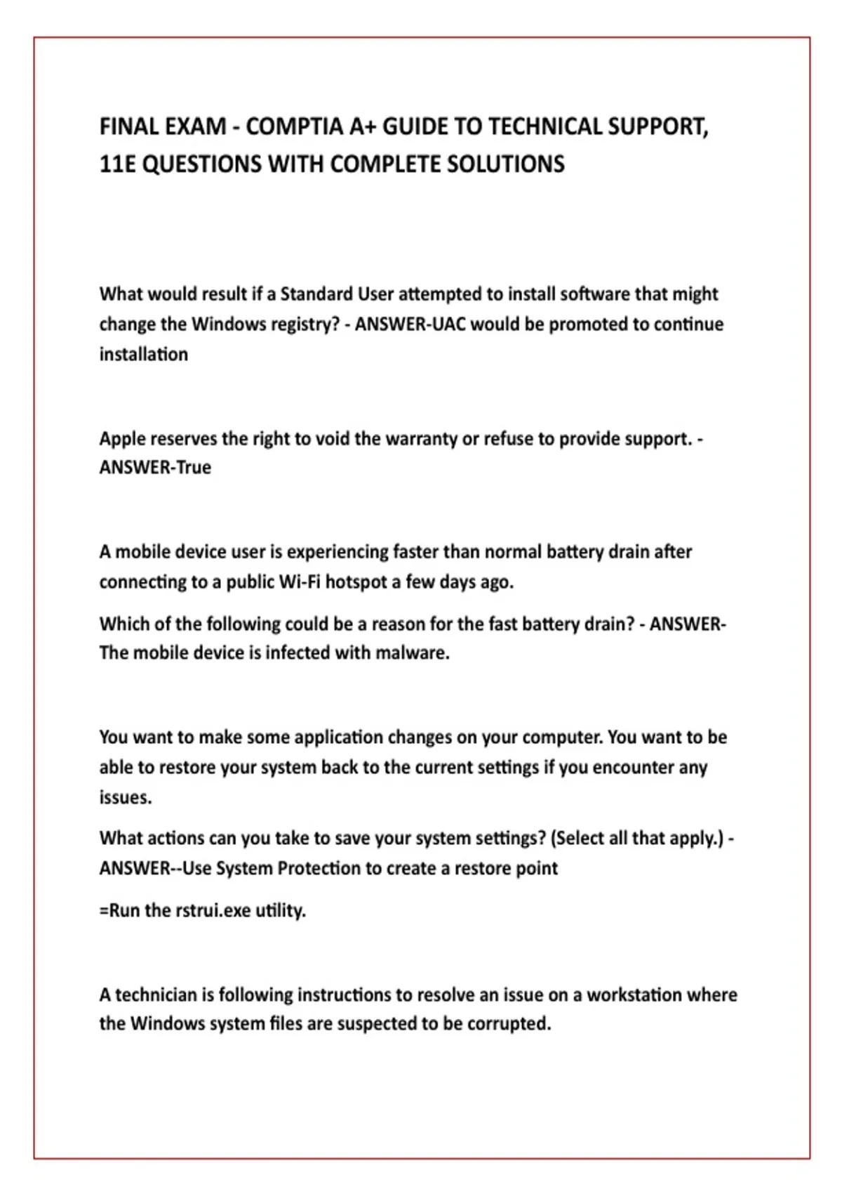 FINAL EXAM - COMPTIA A+ GUIDE TO TECHNICAL SUPPORT, 11E QUESTIONS WITH COMPLETE SOLUTIONS