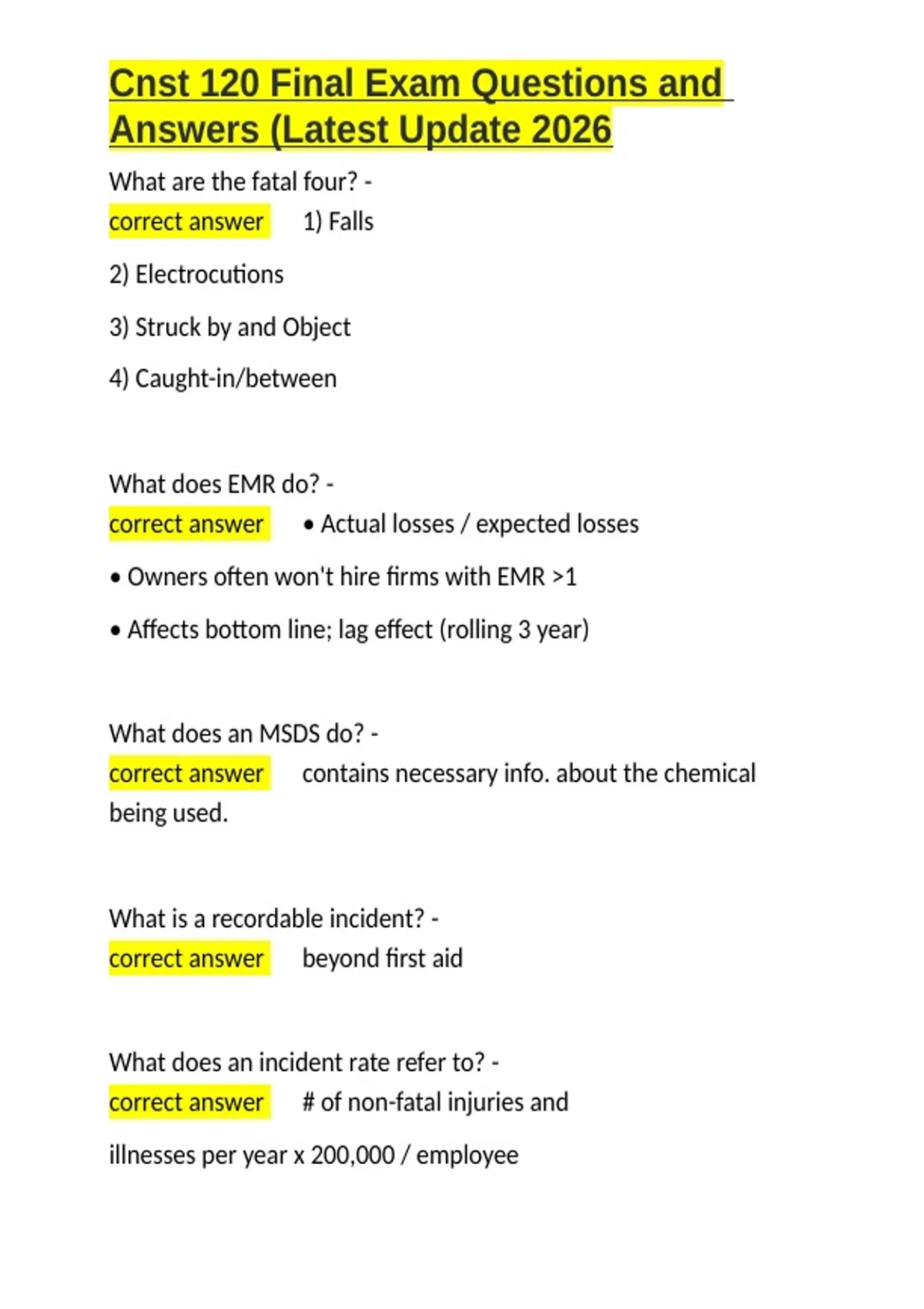 , Cnst 120 Final Exam Questions and