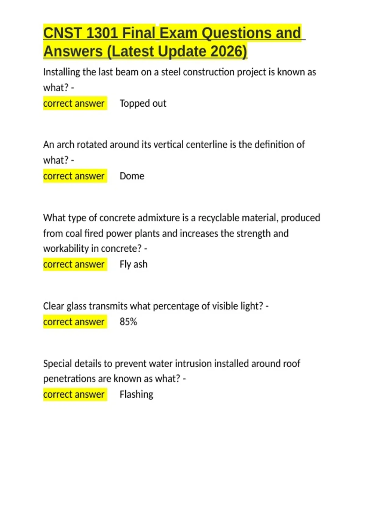 ,CNST 1301 Final Exam Questions and