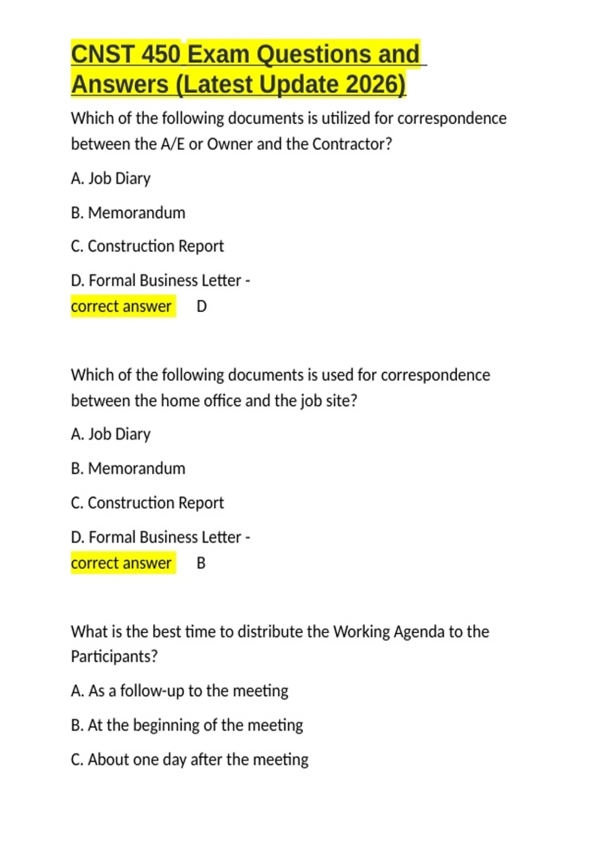CNST 450 Exam Questions and