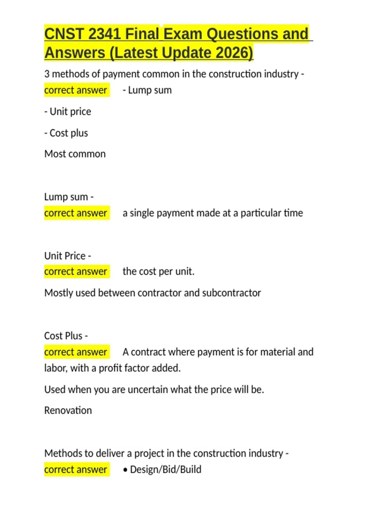 CNST 2341 Final Exam Questions and Answers (Latest Update 2026).docx