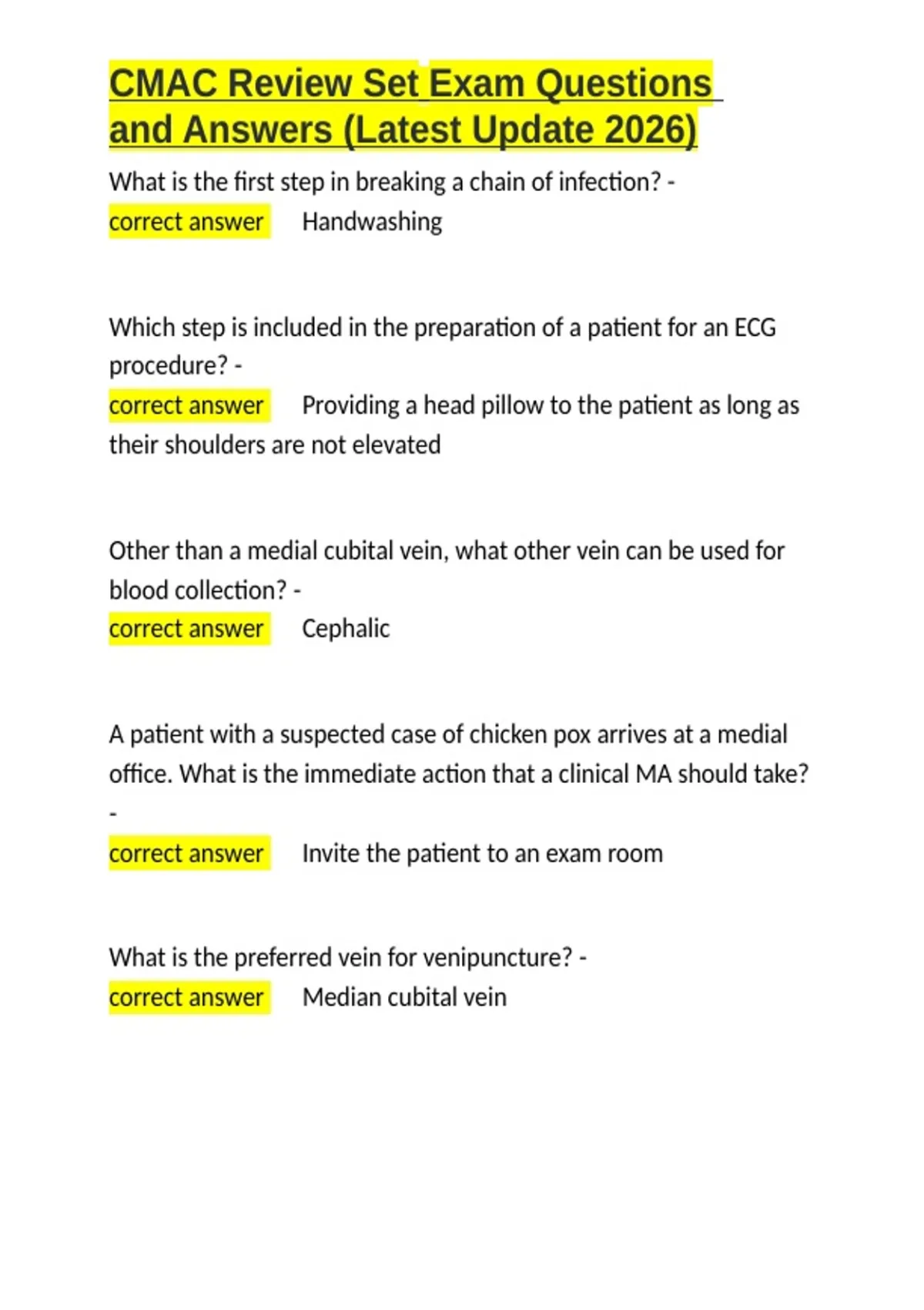 , CMAC Review Set Exam Questions