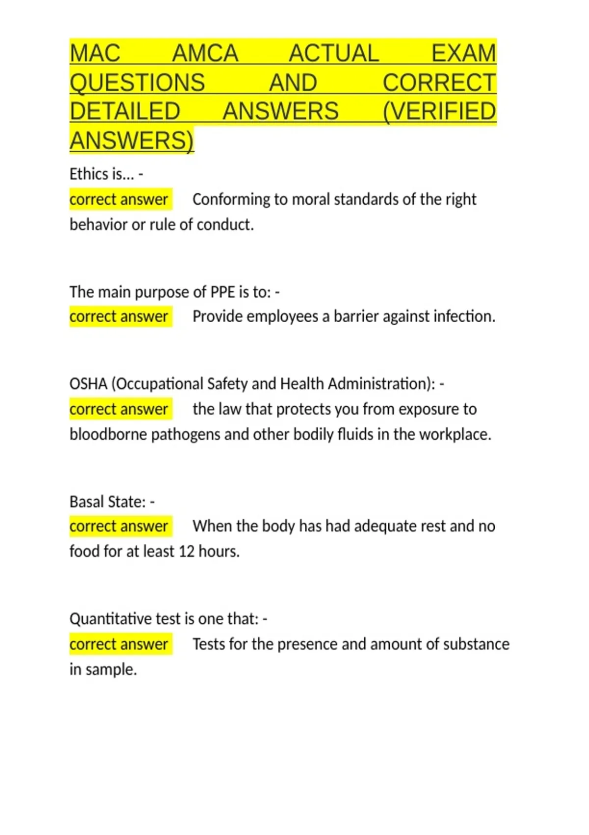 , MAC AMCA ACTUAL EXAM