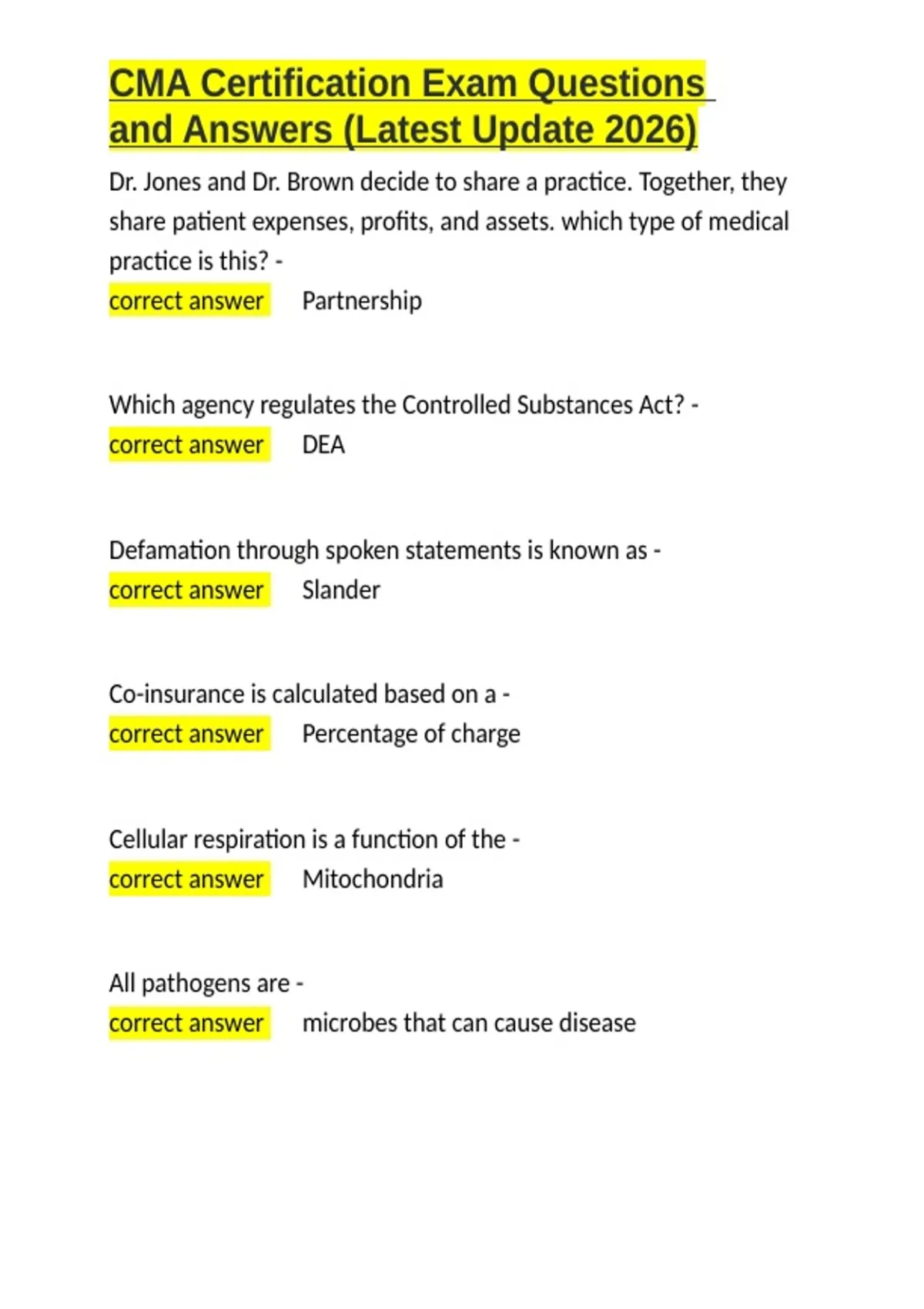 CMA Certification Exam Questions and Answers (Latest Update 2026).docx
