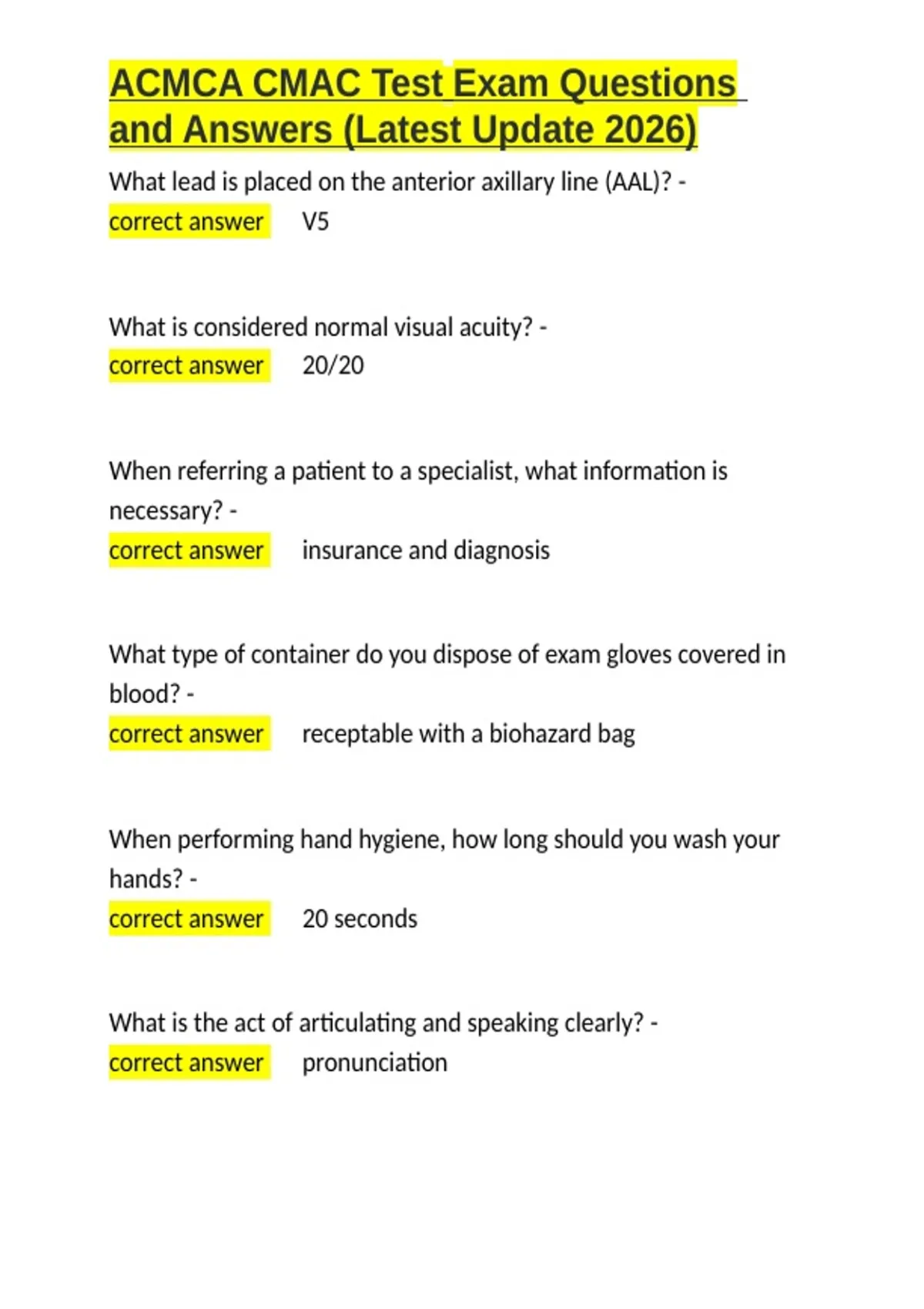 , ACMCA CMAC Test Exam Questions