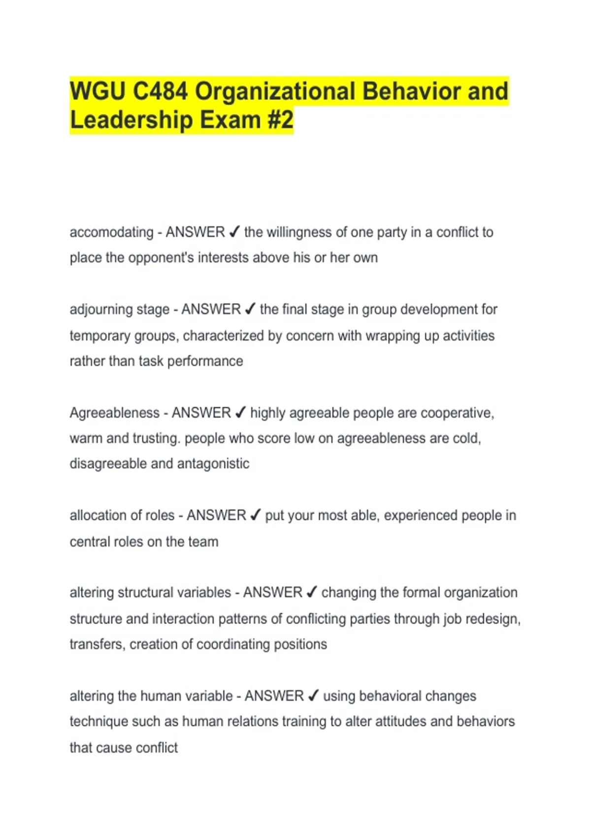 , exam-ready format for - WGU C484 Organizational Behavior and Leadership