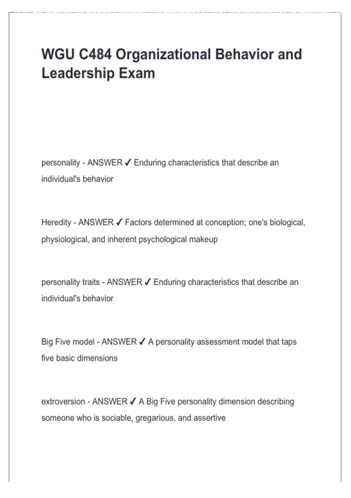 pg. 1 WGU C484 Organizational Behavior and Leadership Exam@!!__