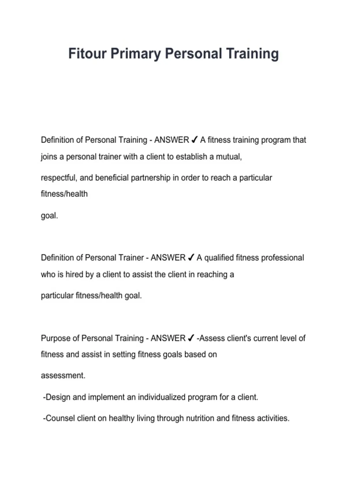 Definition of Personal Training - ANSWER ✔ A fitness training program that