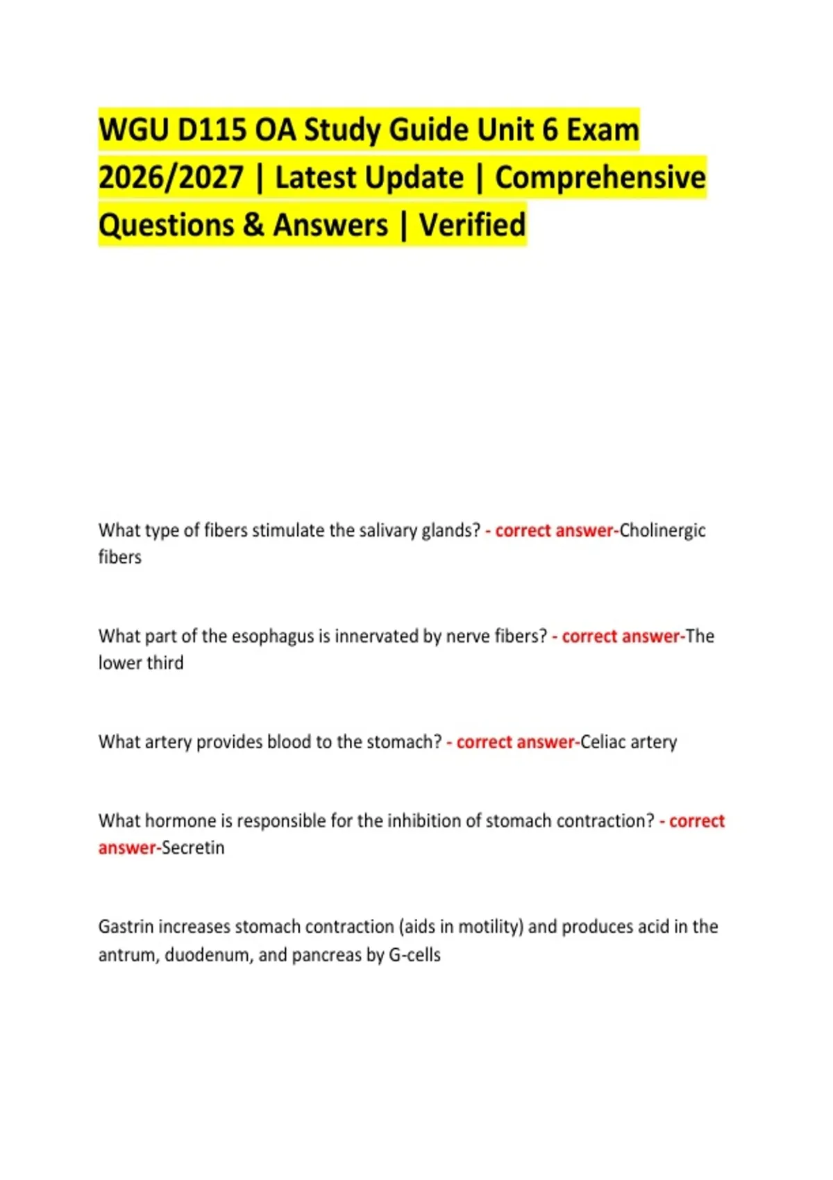 WGU D115 OA Study Guide Unit 6 Exam