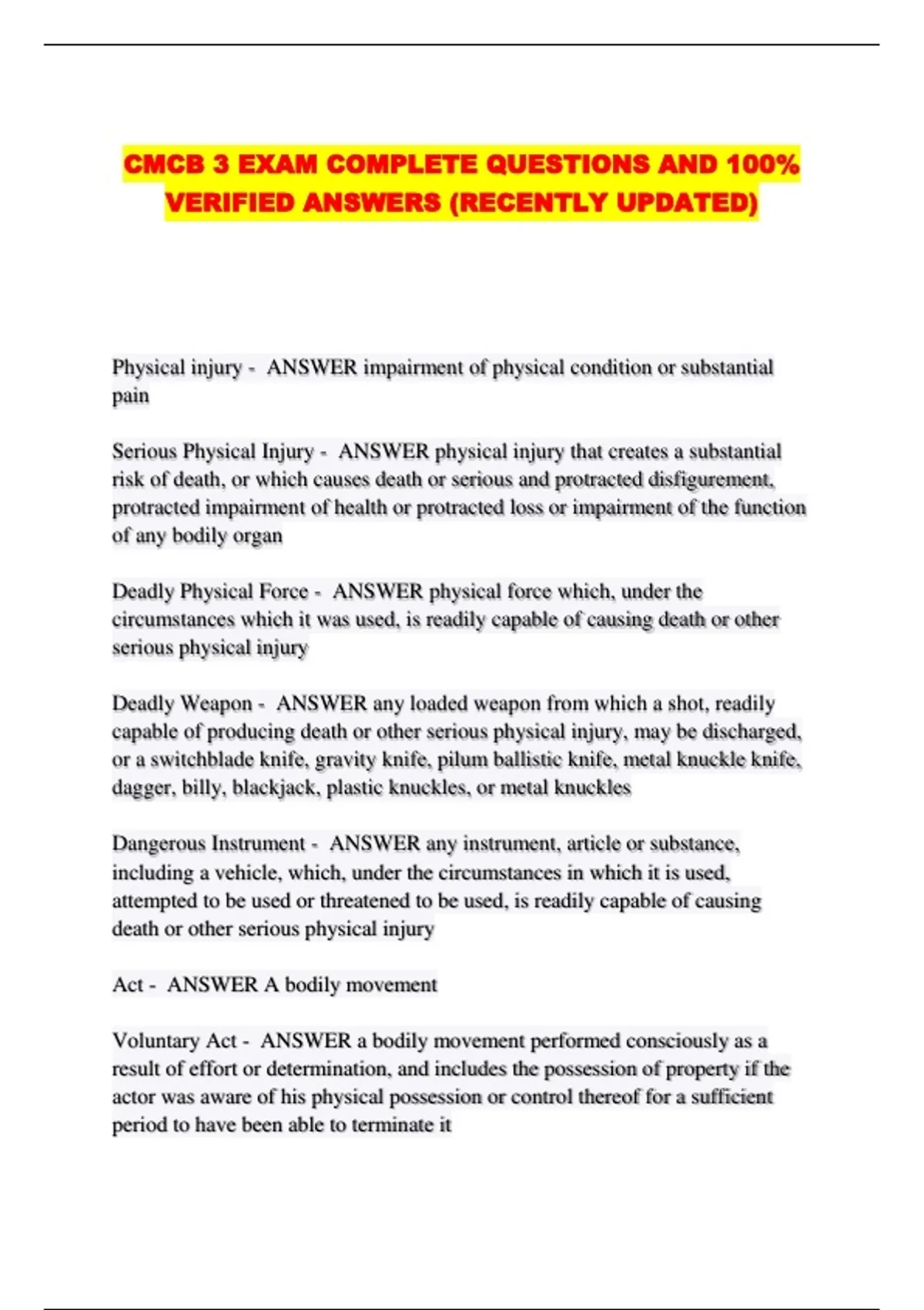 Deadly Physical Force - ANSWER physical force which, under the