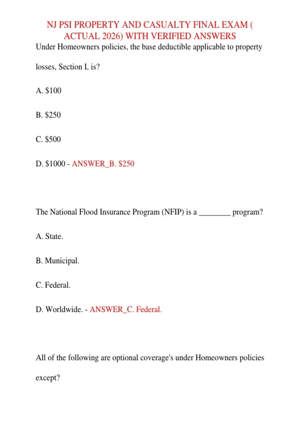 , NJ PSI PROPERTY AND CASUALTY FINAL EXAM