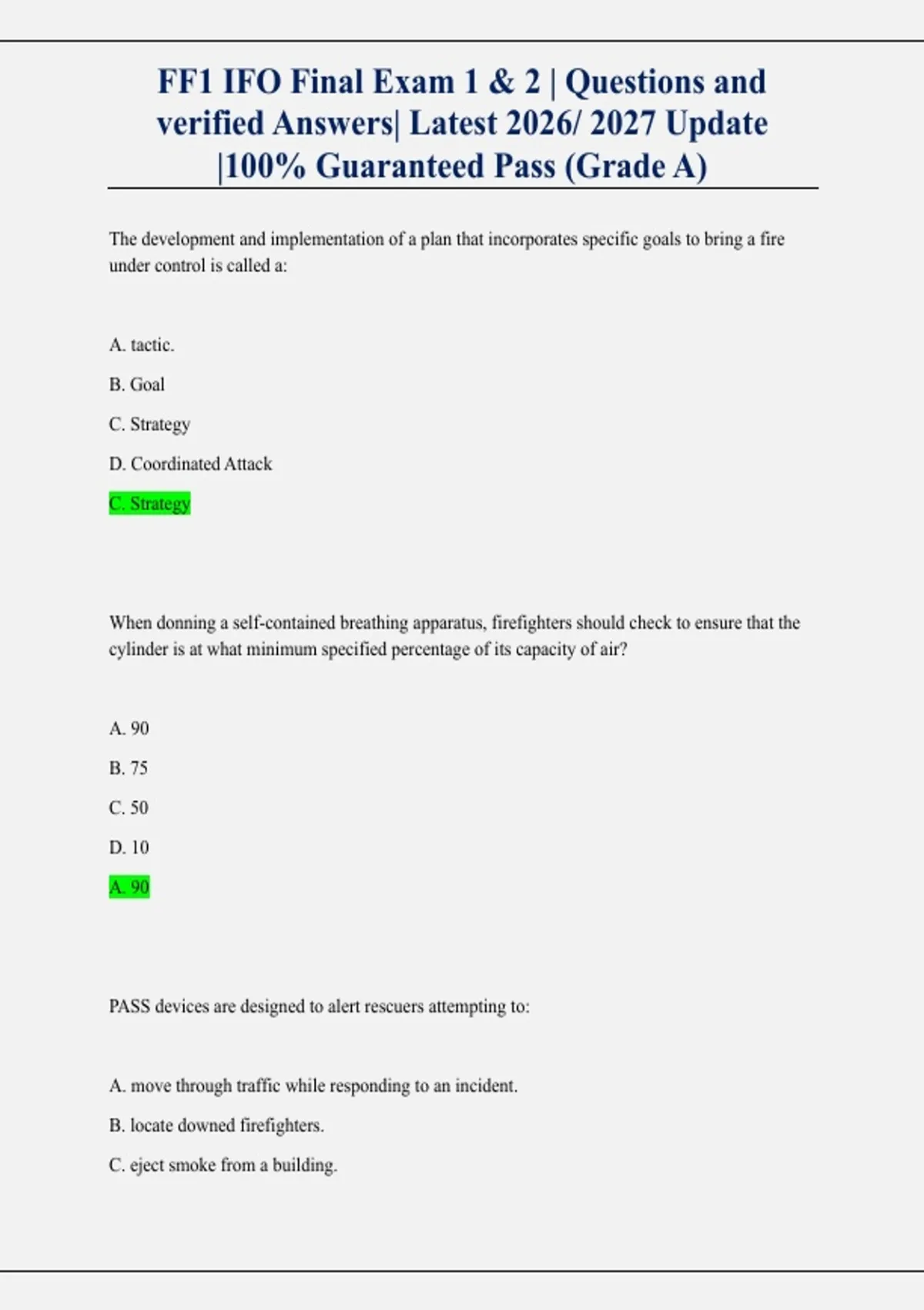, FF1 IFO Final Exam 1 & 2 | Questions and