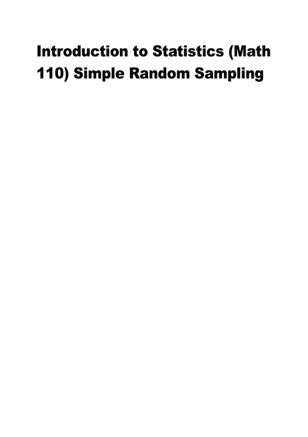 Introduction to Statistics (Math 110) – Simple Random Sampling | Study Guide 2026/2027