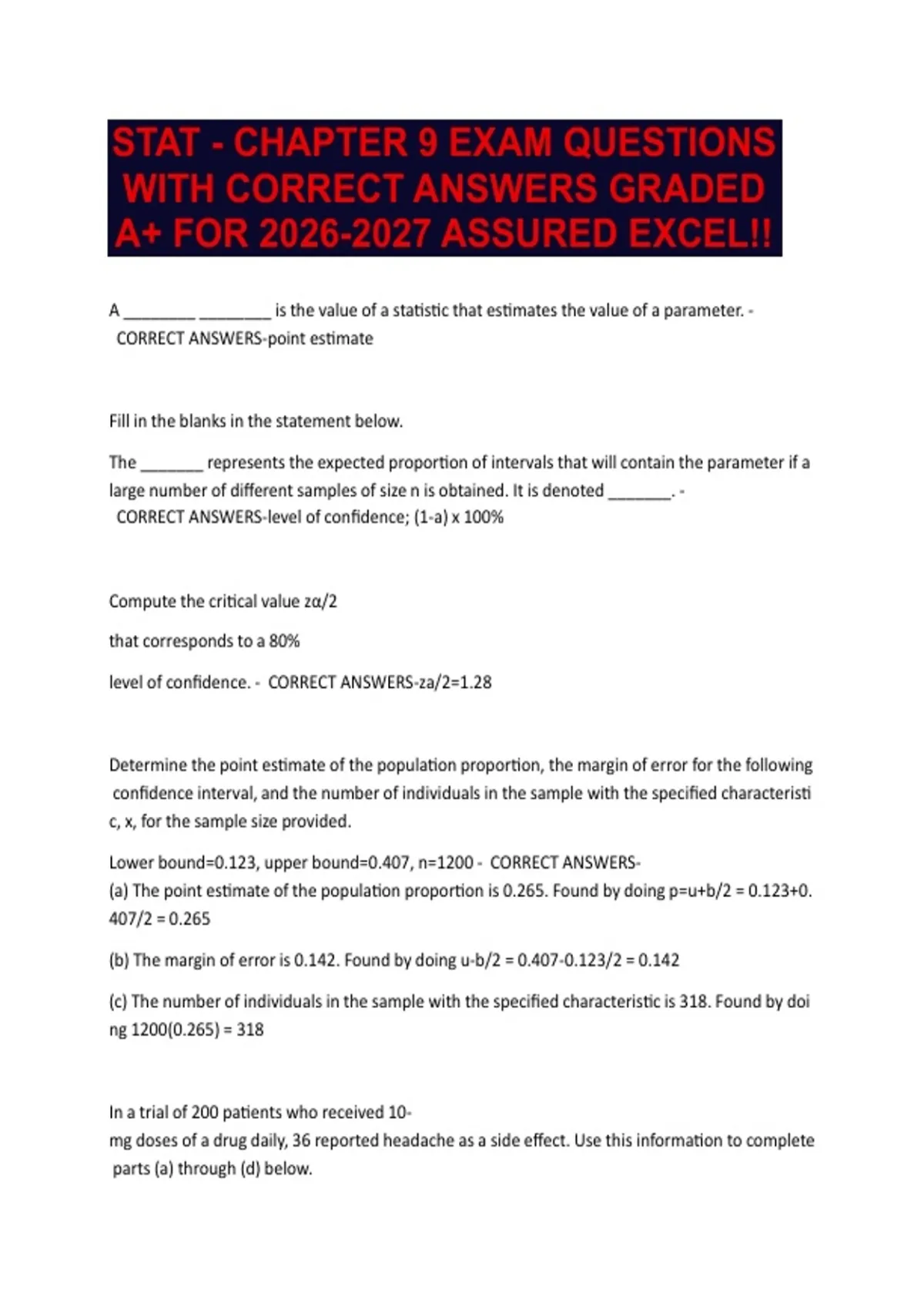 leveleofeconfidence.e-eeCORRECTeANSWERS-za/2=1.28