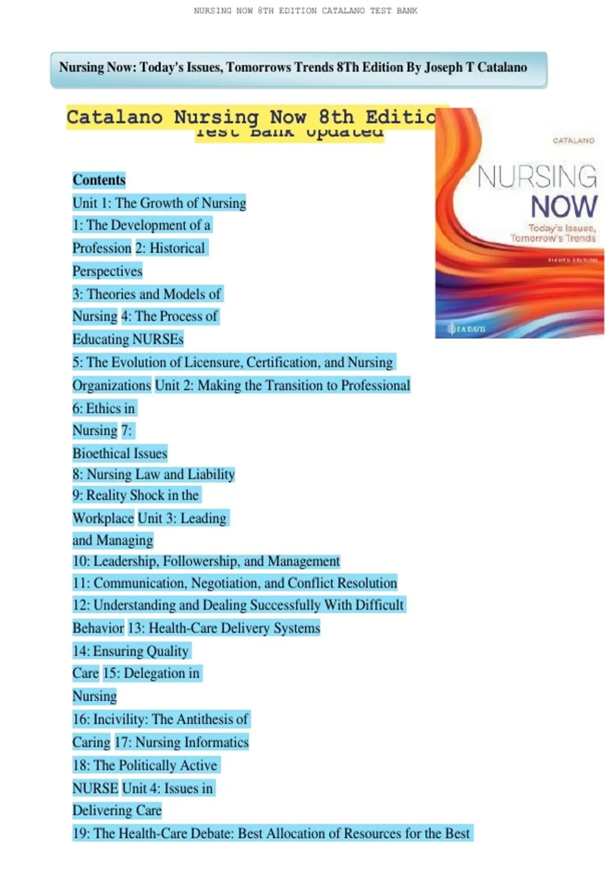 Test Bank For Nursing Now: Today's Issues, Tomorrows Trends, 8th Edition By Joseph T. Catalano ||NEW VERSION92026)