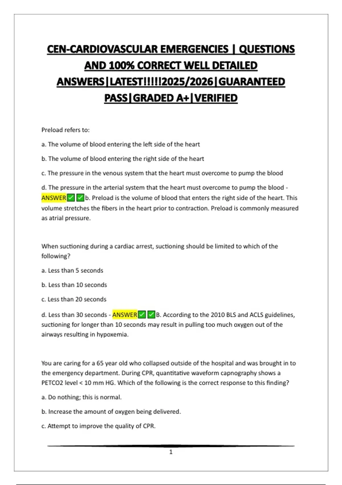 ANSWER b. Preload is the volume of blood that enters the right side of the heart. This