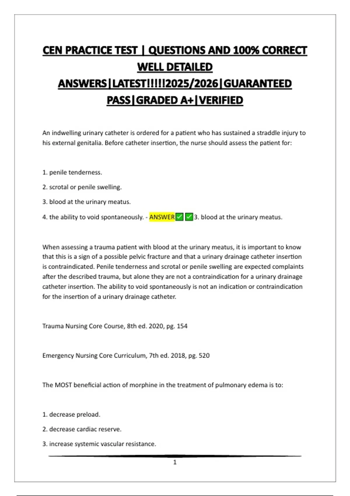 4. the ability to void spontaneously. - ANSWER 3. blood at the urinary meatus.