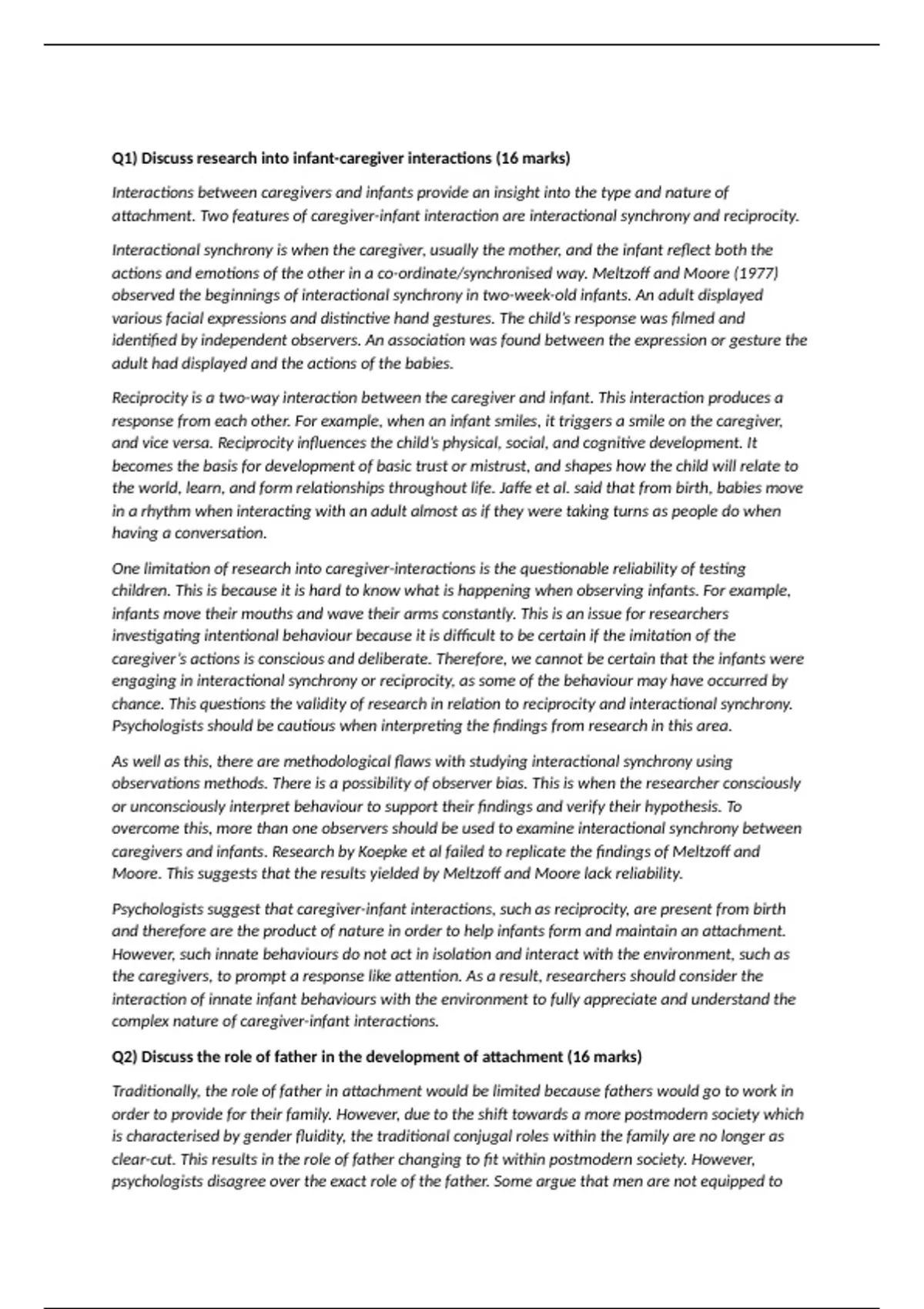 Q1) Discuss research into infant-caregiver interactions (16 marks)