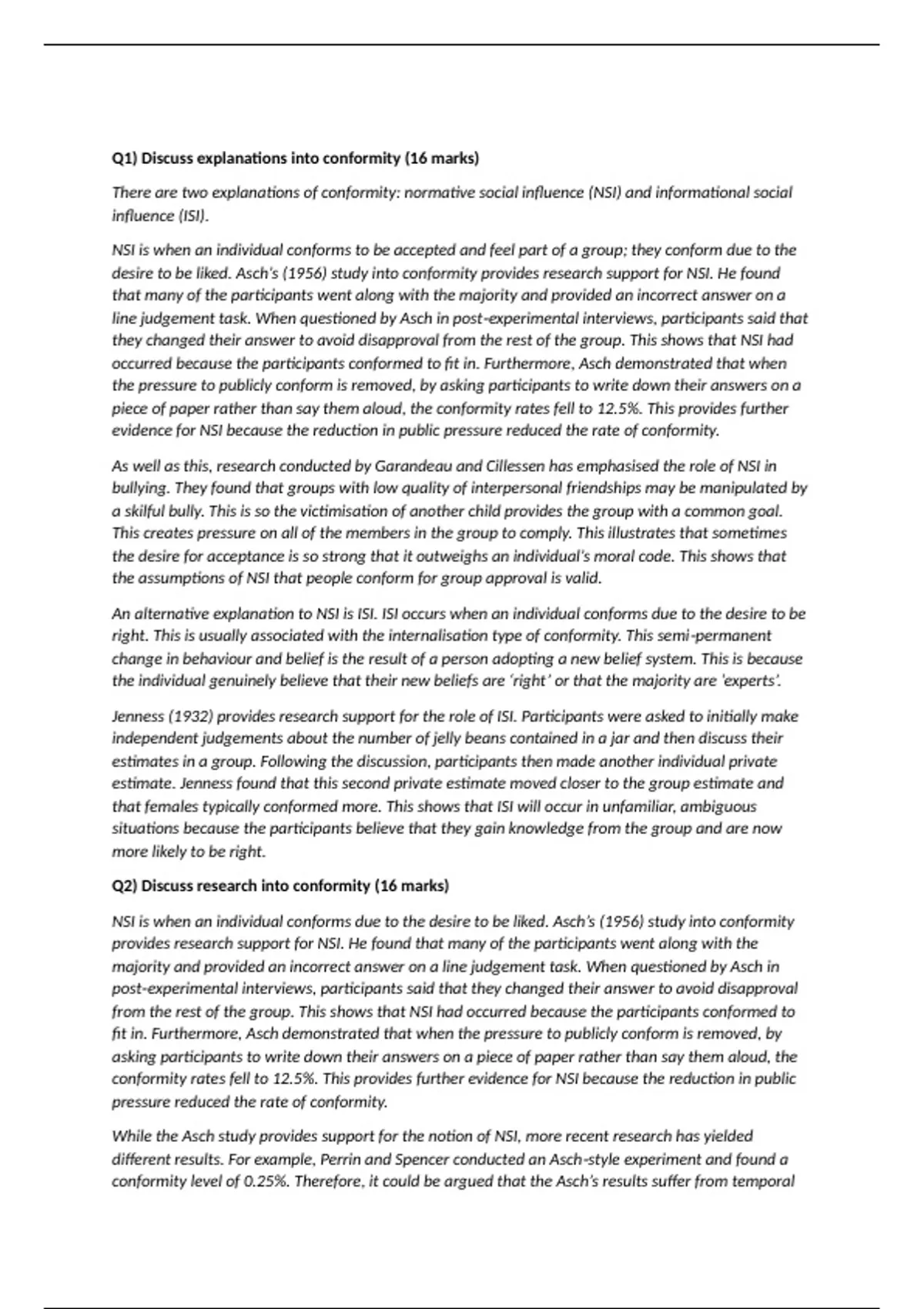 Q2) Discuss research into conformity (16 marks)
