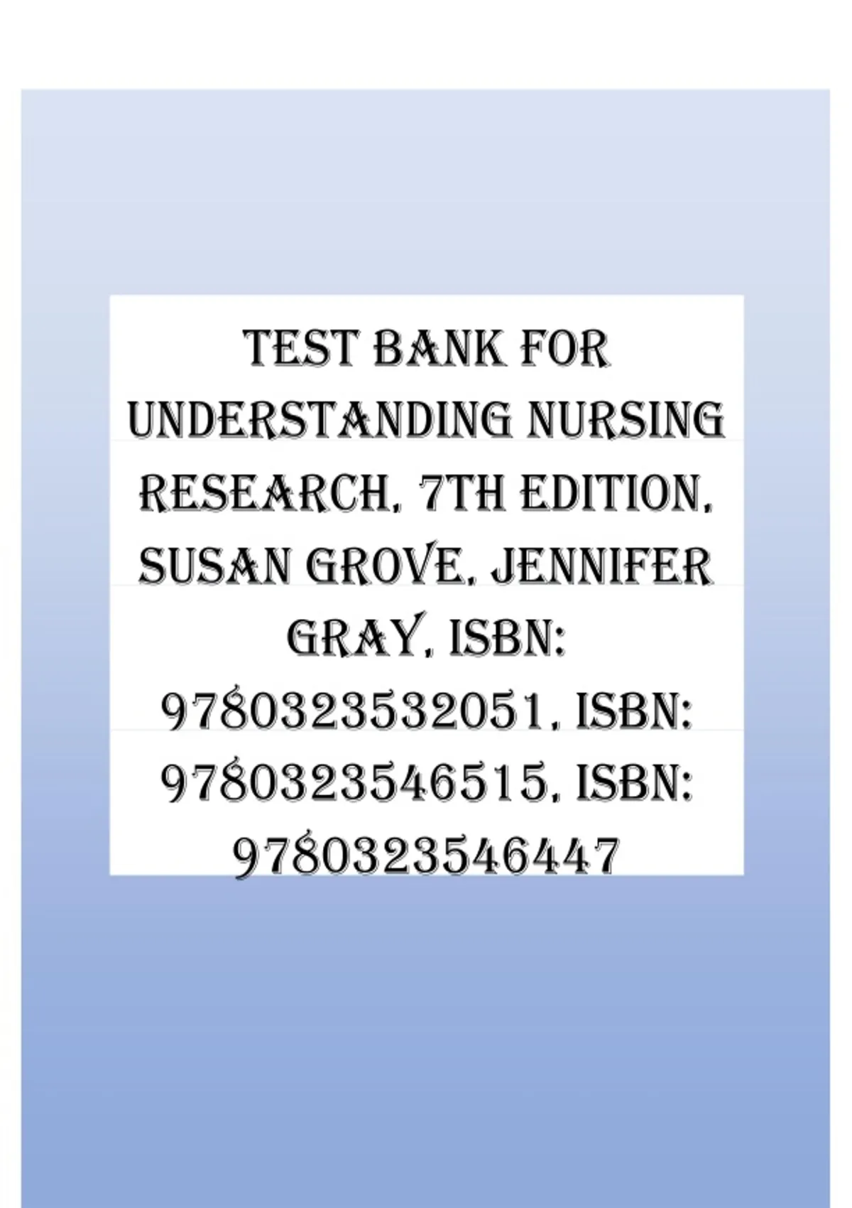 ,Test Bank for Understanding Nursing Research, 7th Edition, Susan Grove,
