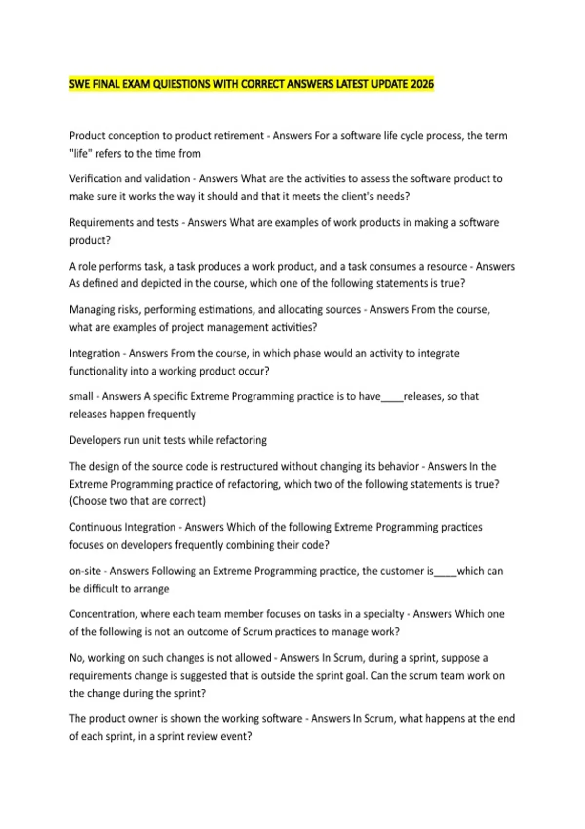 Managing risks, performing estimations, and allocating sources - Answers From the course,