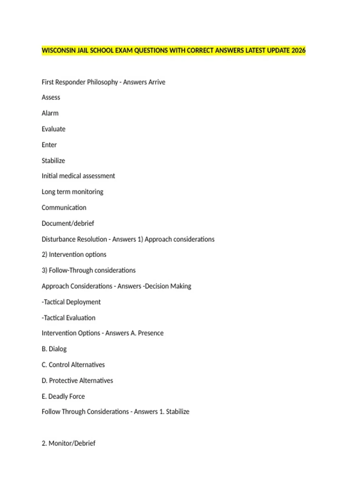 Follow Through Considerations - Answers 1. Stabilize