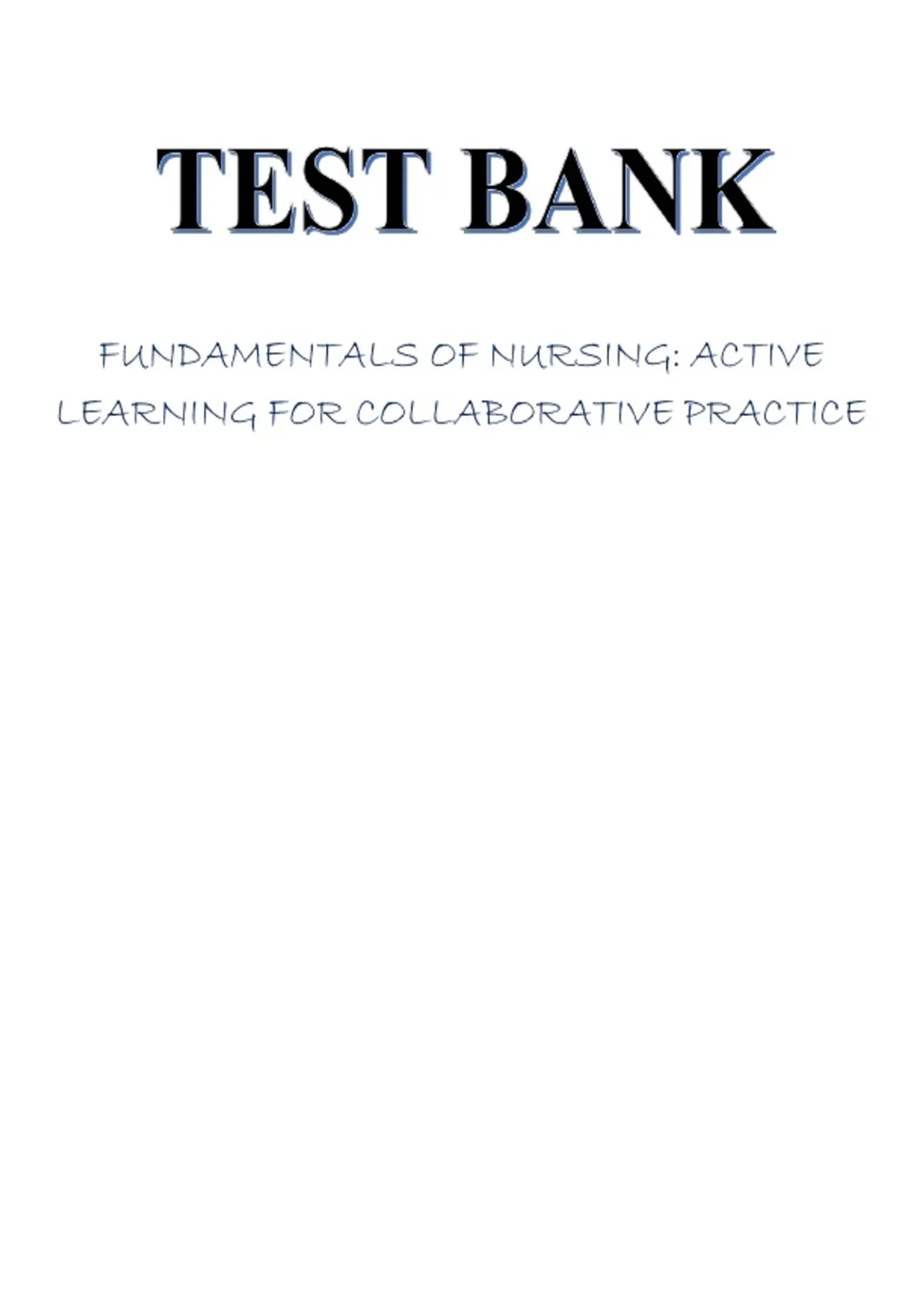 This test bank for Fundamentals of Nursing: Active Learning for Collaborative Practice 2nd Edition by Barbara L. Yoost includes comprehensive practice questions and answers. It covers core nursing concepts, collaborative care, clinical decision-making, and patient-centered practice, supporting students in exam preparation and skill mastery.