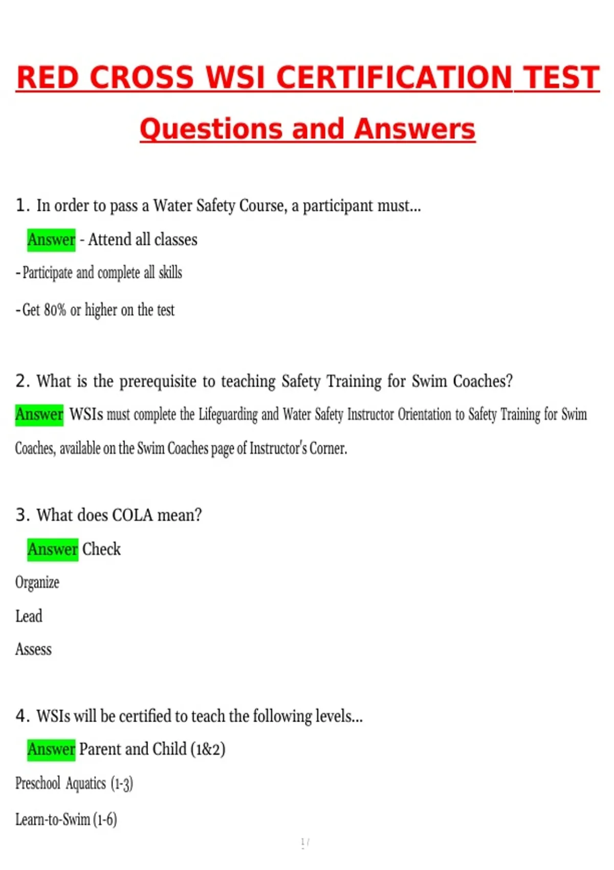 1. In order to pass a Water Safety Course, a participant must...