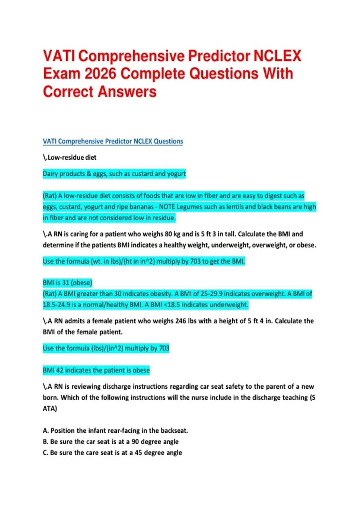VATI Comprehensive Predictor NCLEX Exam 2026 Complete Questions With Correct Answers
