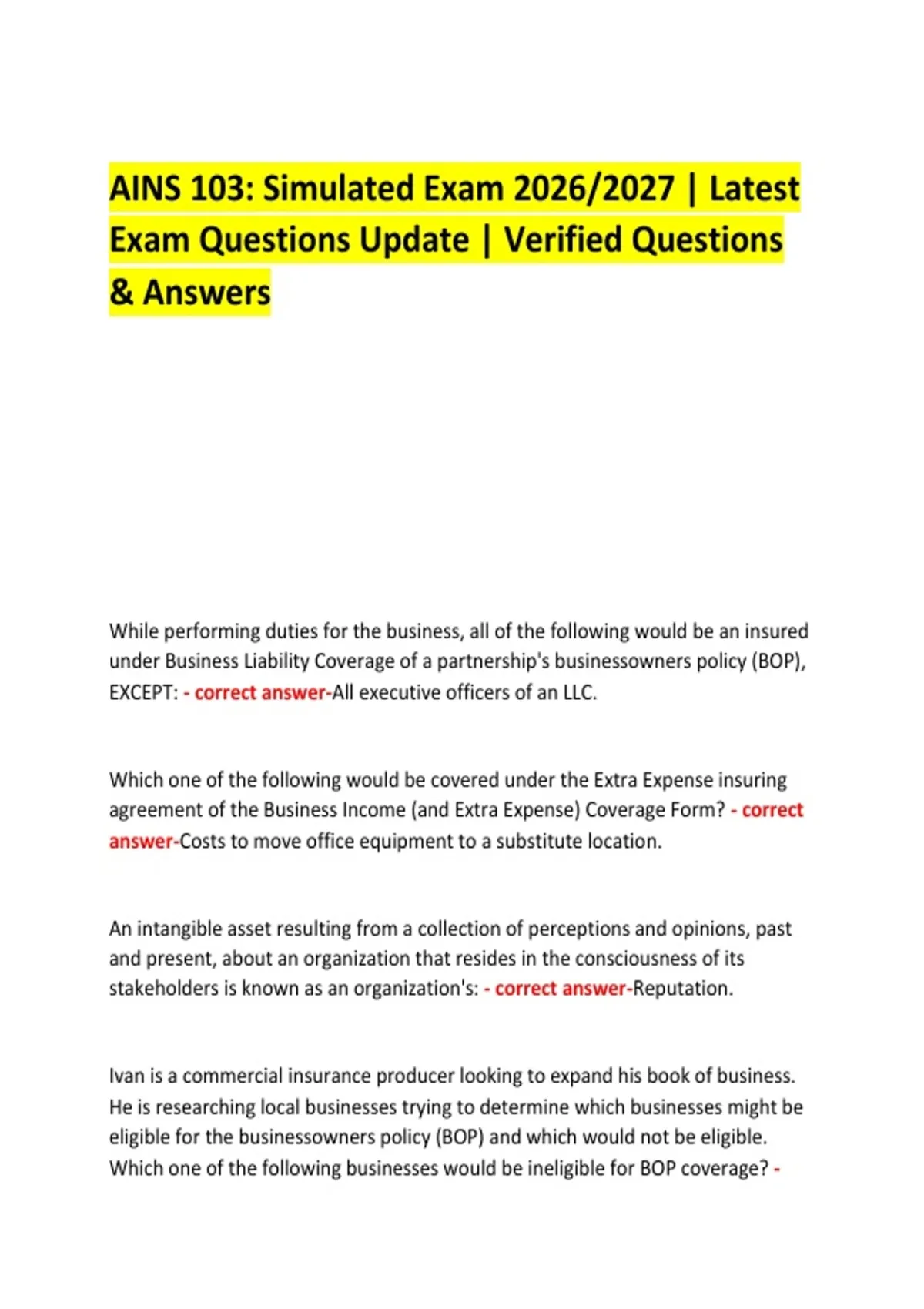 AINS 103: Simulated Exam 2026/2027 | Latest