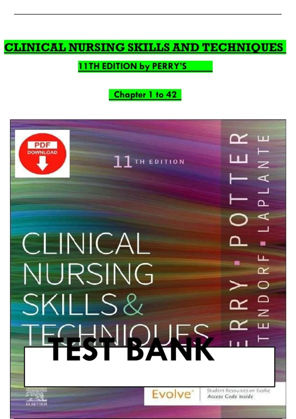 Prepare confidently for your clinical nursing exams with this complete test bank for Clinical Nursing Skills and Techniques, 11th Edition by Perry and Potter. It includes exam-focused questions with accurate answers designed to reinforce hands-on nursing competencies and safe patient care. Coverage spans Chapters 1–42, including infection control, patient safety, vital signs, medication administration, wound care, mobility, documentation, perioperative skills, and evidence-based clinical procedures—making it an essential resource for nursing skills exams and clinical practice preparation.