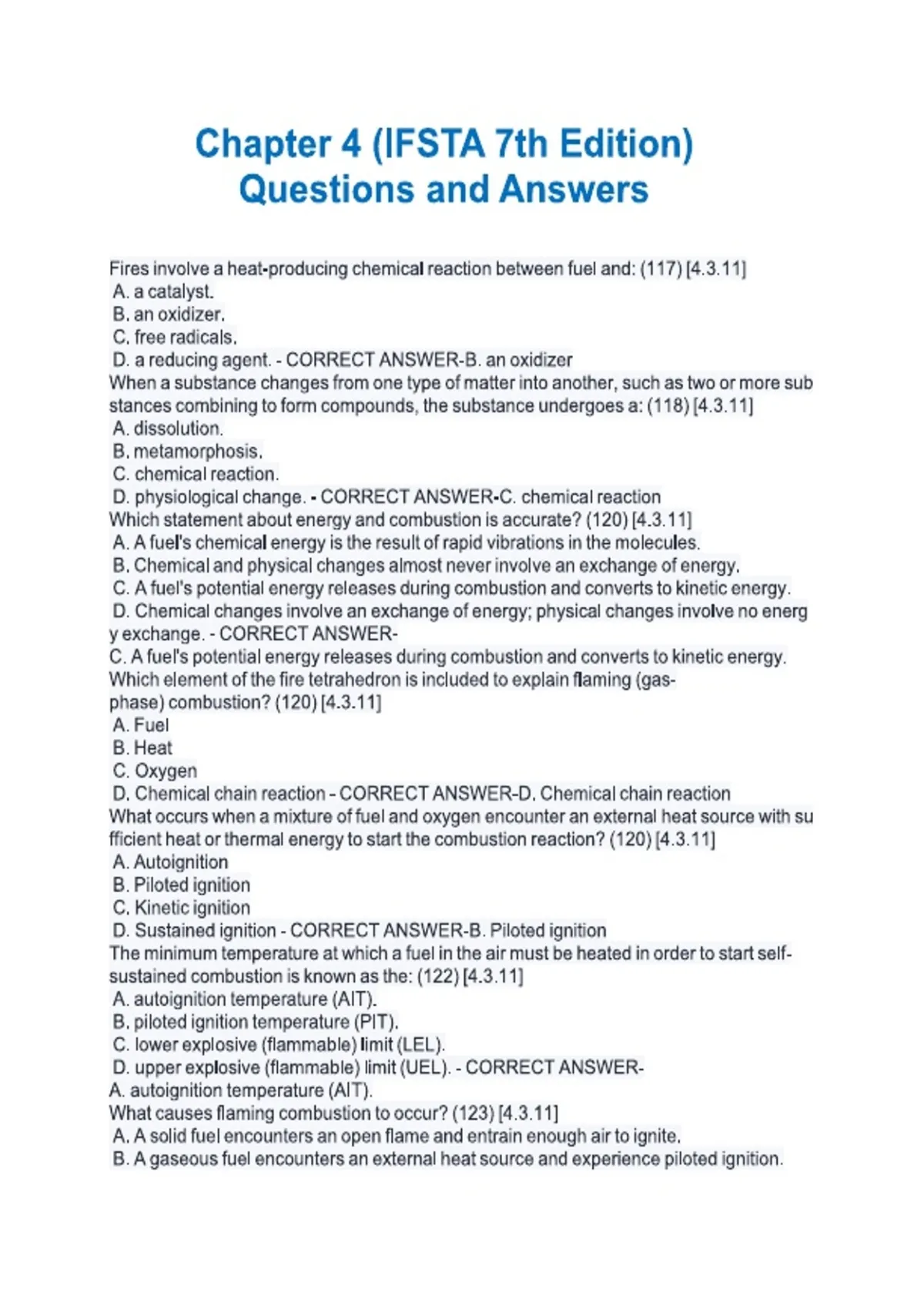 Chapter 4 (IFSTA 7th Edition) Questions and Answers.