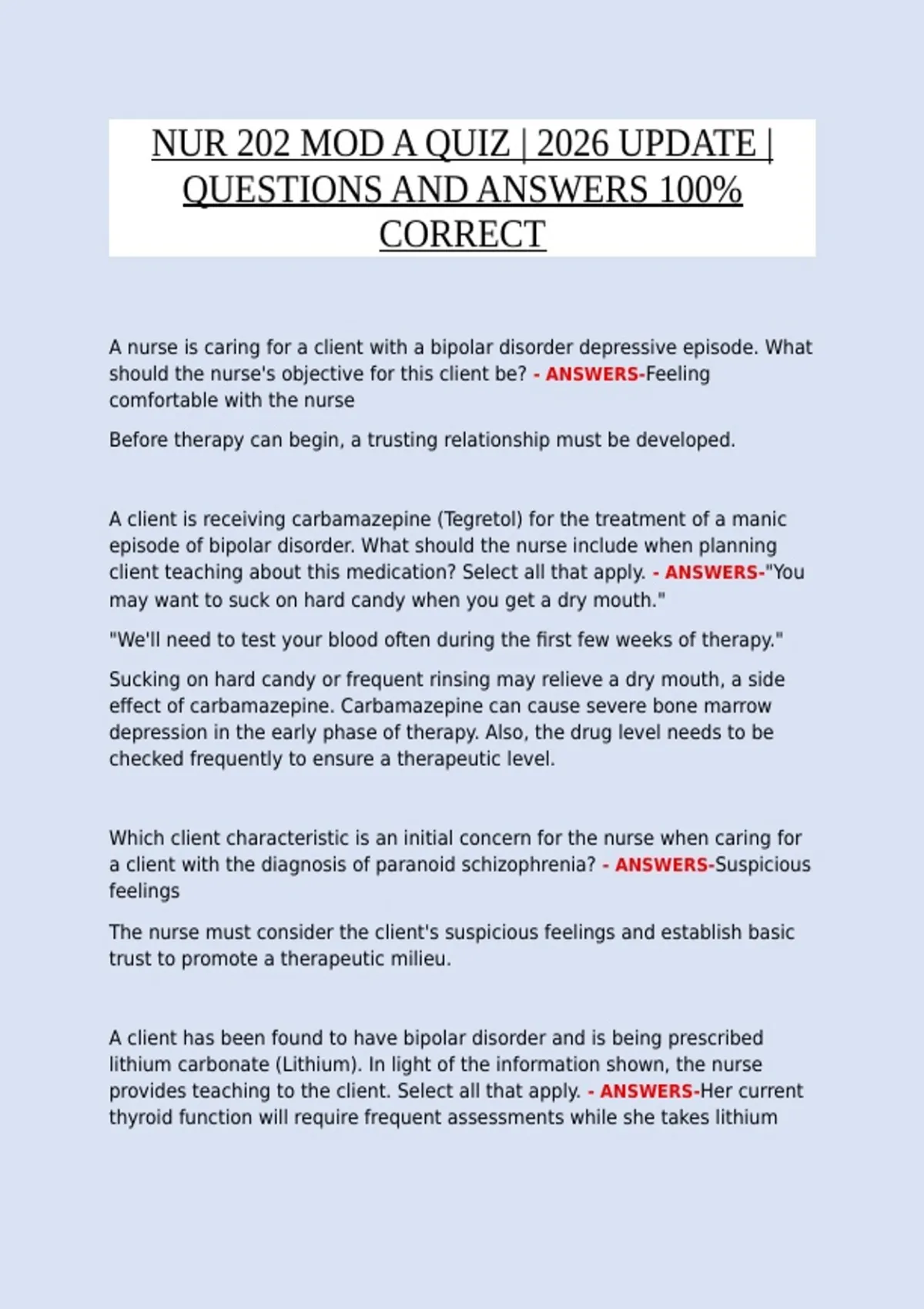 NUR 202 MOD A QUIZ | 2026 UPDATE |