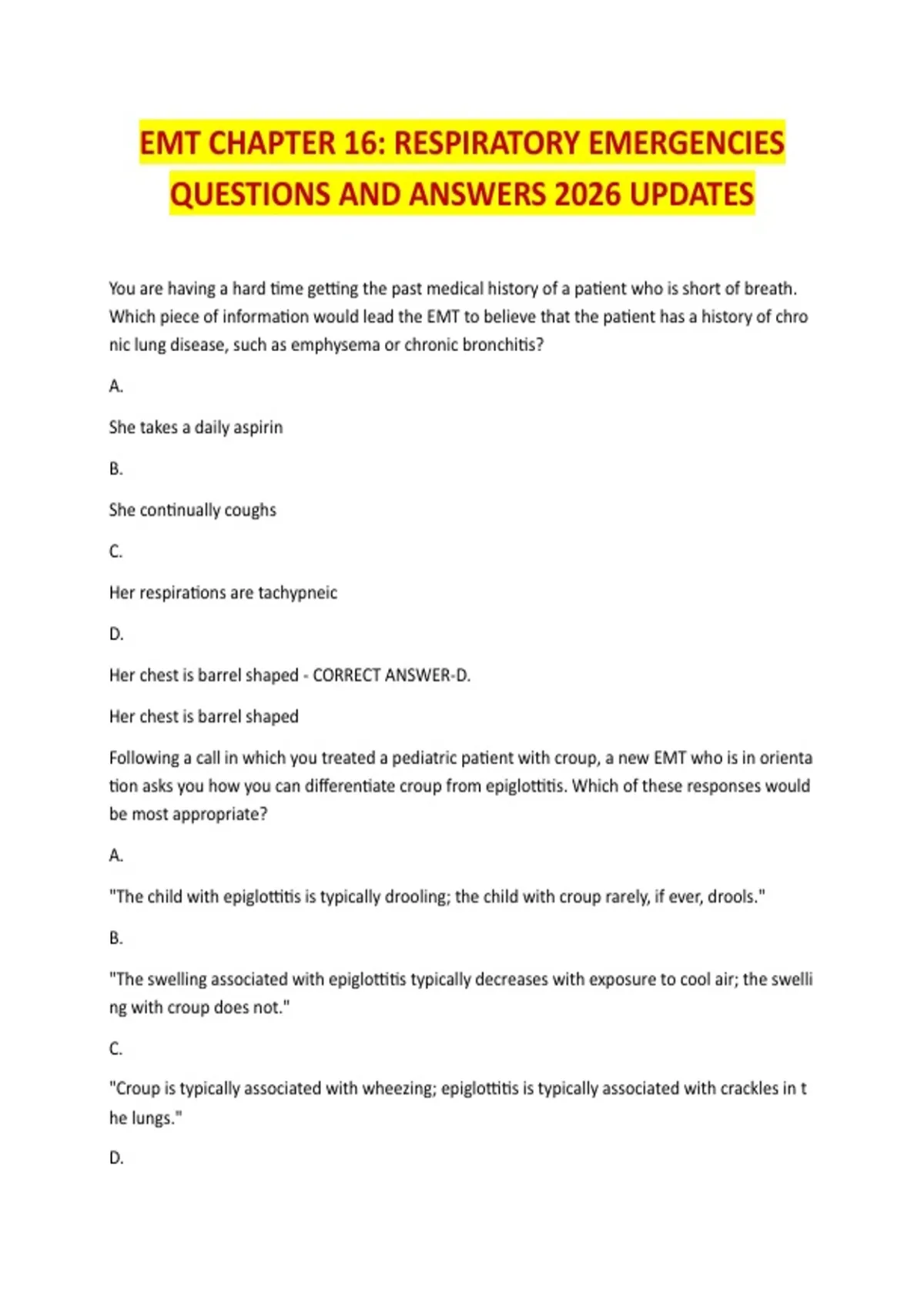 EMT CHAPTER 16: RESPIRATORY EMERGENCIES