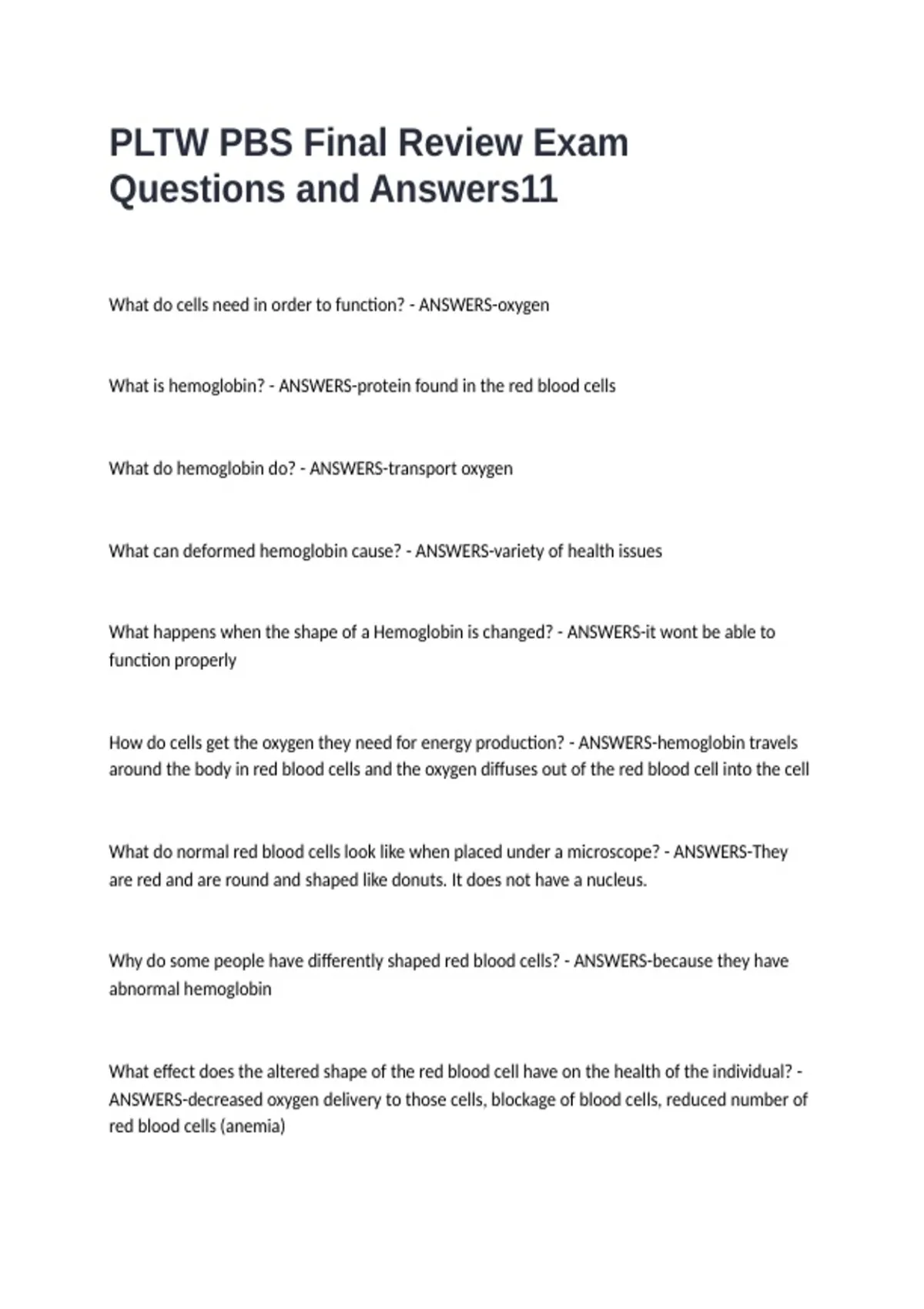 PLTW PBS Final Review Exam Questions and Answers