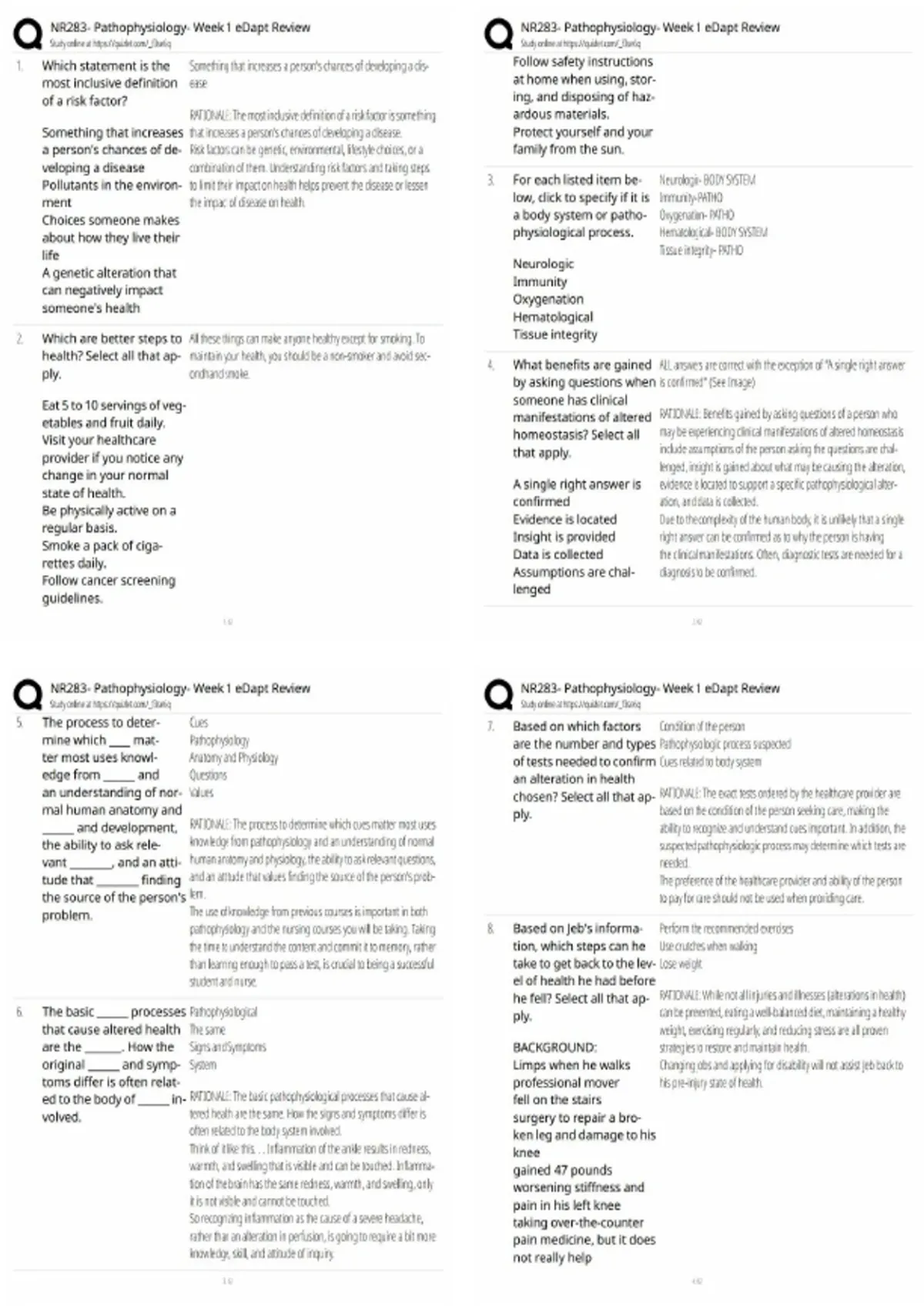 NR283 Pathophysiology Week 1 eDapt Review | Score 100% | New Version / 2025 Update