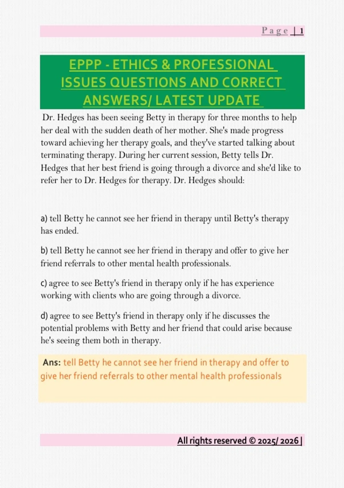 d) agree to see Betty's friend in therapy only if he discusses the