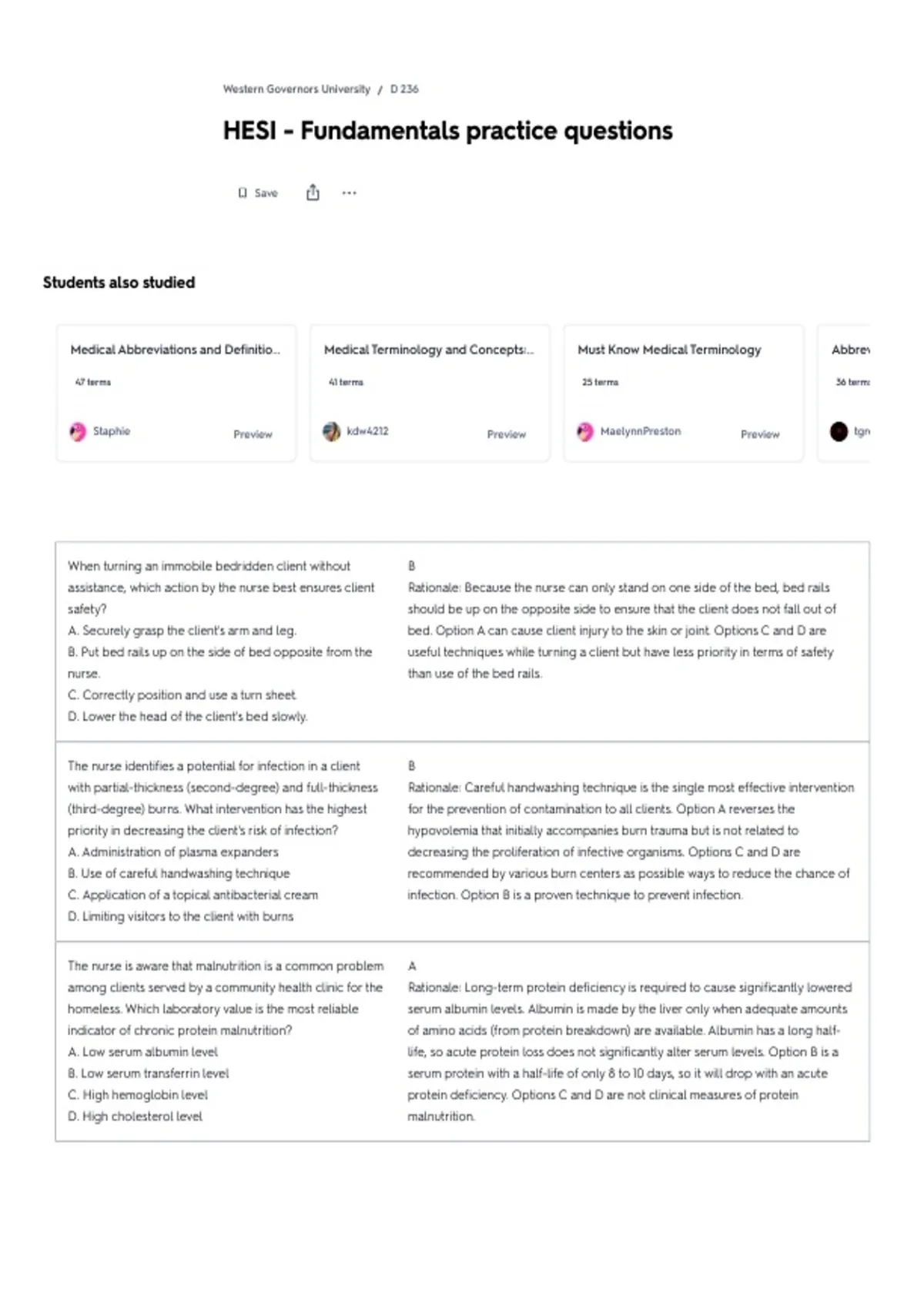 HESI - Fundamentals practice questions QUESTIONS AND CORRECT DETAILED ANSWERS WITH RATIONALES HESI - Fundamentals practice questions QUESTIONS AND CORRECT DETAILED ANSWERS WITH RATIONALES