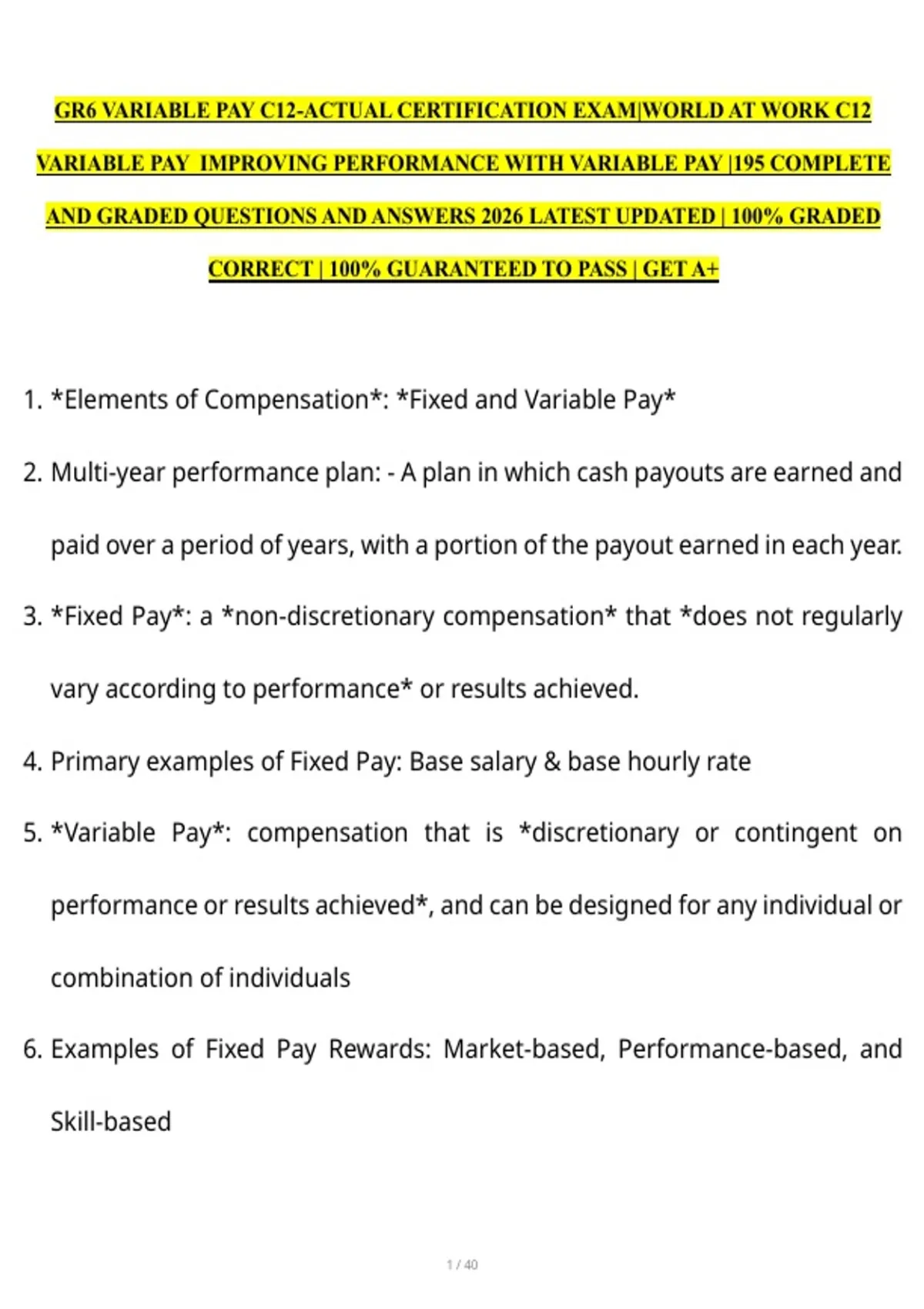 1. *Elements of Compensation*: *Fixed and Variable Pay*