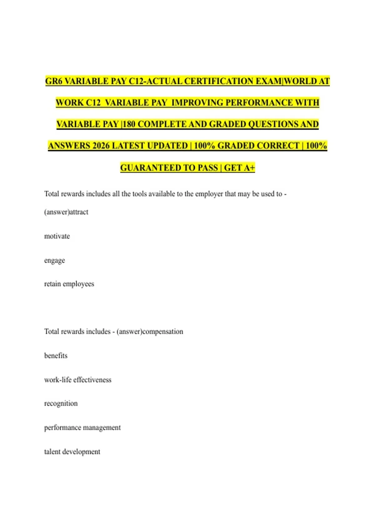 VARIABLE PAY |180 COMPLETE AND GRADED QUESTIONS AND
