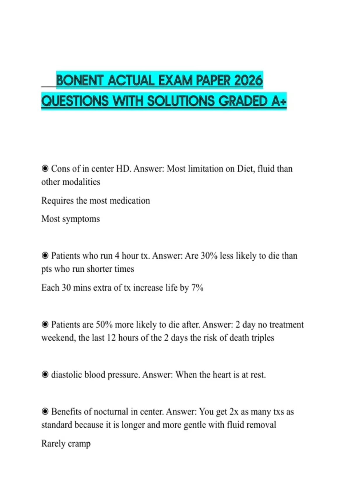 ◉ Cons of in center HD. Answer: Most limitation on Diet, fluid than